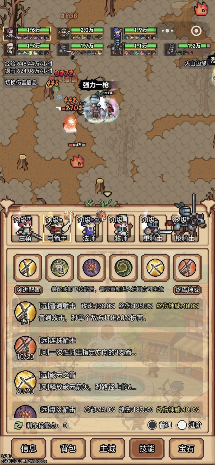 论坛中各位大佬的攻略很多,我这里只提供前期过渡攻略,主打一个简单粗暴一、核心目标:快速冲级与资源规划主线优先:前期紧跟主线任务推进,解锁功能与资源产出。角色解锁:尽快招募弓箭手、法师、牧师、枪骑士、重骑士,组建完整队伍。等级压制:经验优先分配给主角,确保其等级领先,以解锁高级地图,以便加速进度。二、技能与输出循环构建技能优先级:主力输出技能:主角「剑刃」、弓箭手「爆炎」、法师「幽冥」