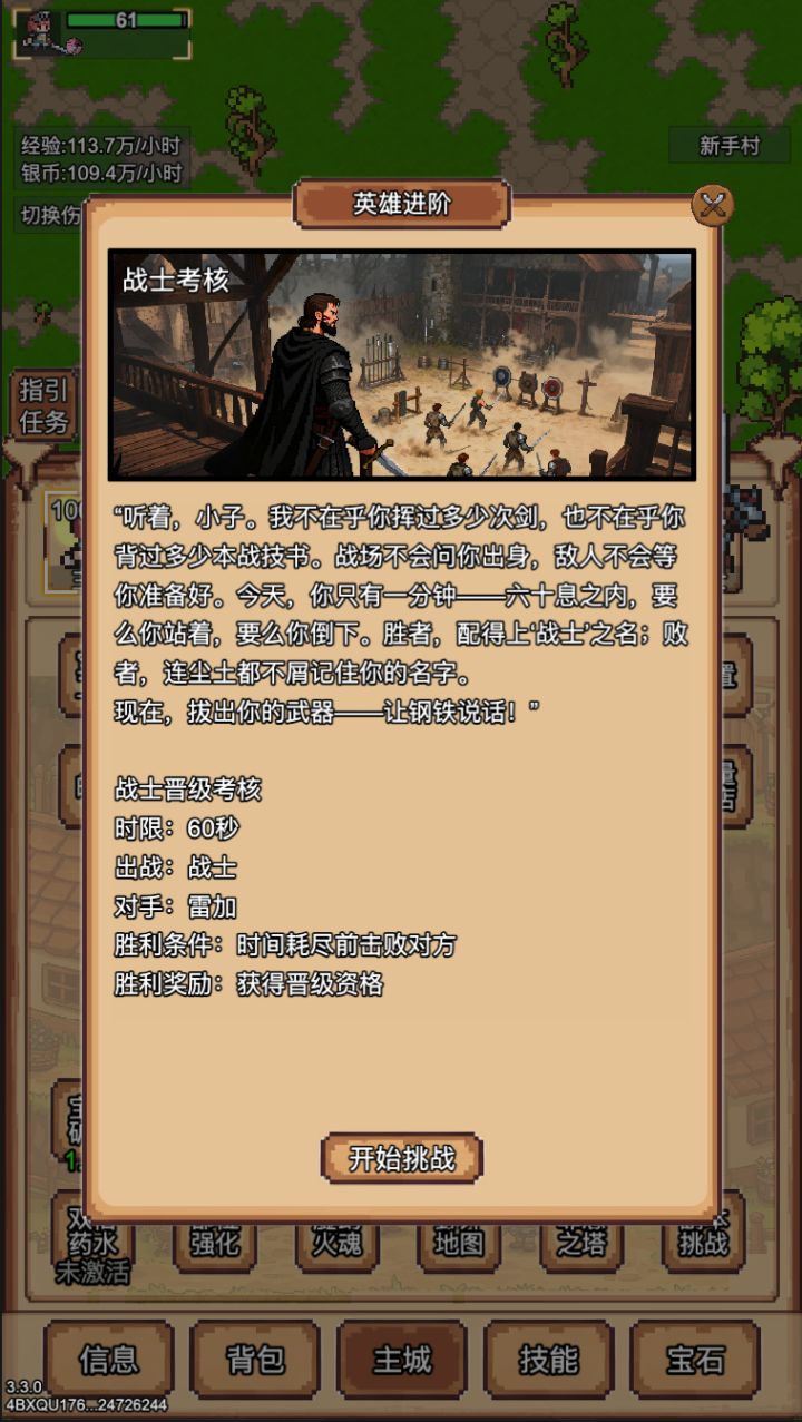 开放英雄进阶挑战开放英雄进阶技能开放最高等级109野外洗练石掉落翻倍矿工开放700级捕鱼开放450级古神契约开放更高级福利码:更新游戏后,在游戏主页的邮箱里领取