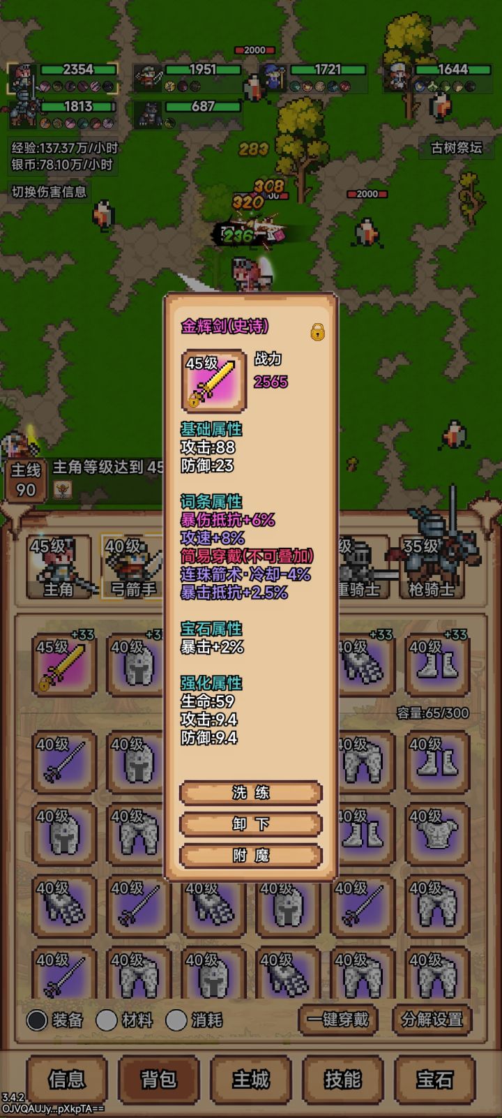挂机90前主要洗弓法,基本就能打到每个图的上限,90后洗主角和枪骑士.100后盾洗普攻加成和嘲讽cd走半输出.----------------100进阶---------------单升魂火-赤炎拉到99主角-弓-法-骑士-带赤炎,眩晕放顺位1.多凹几次暴击,带套90金也能过.打不过就混几个100奶-80混套90的cd奶洗练,抗60秒.盾-90一套基本能打,卸下攻速宝石和两输出技能,抗6