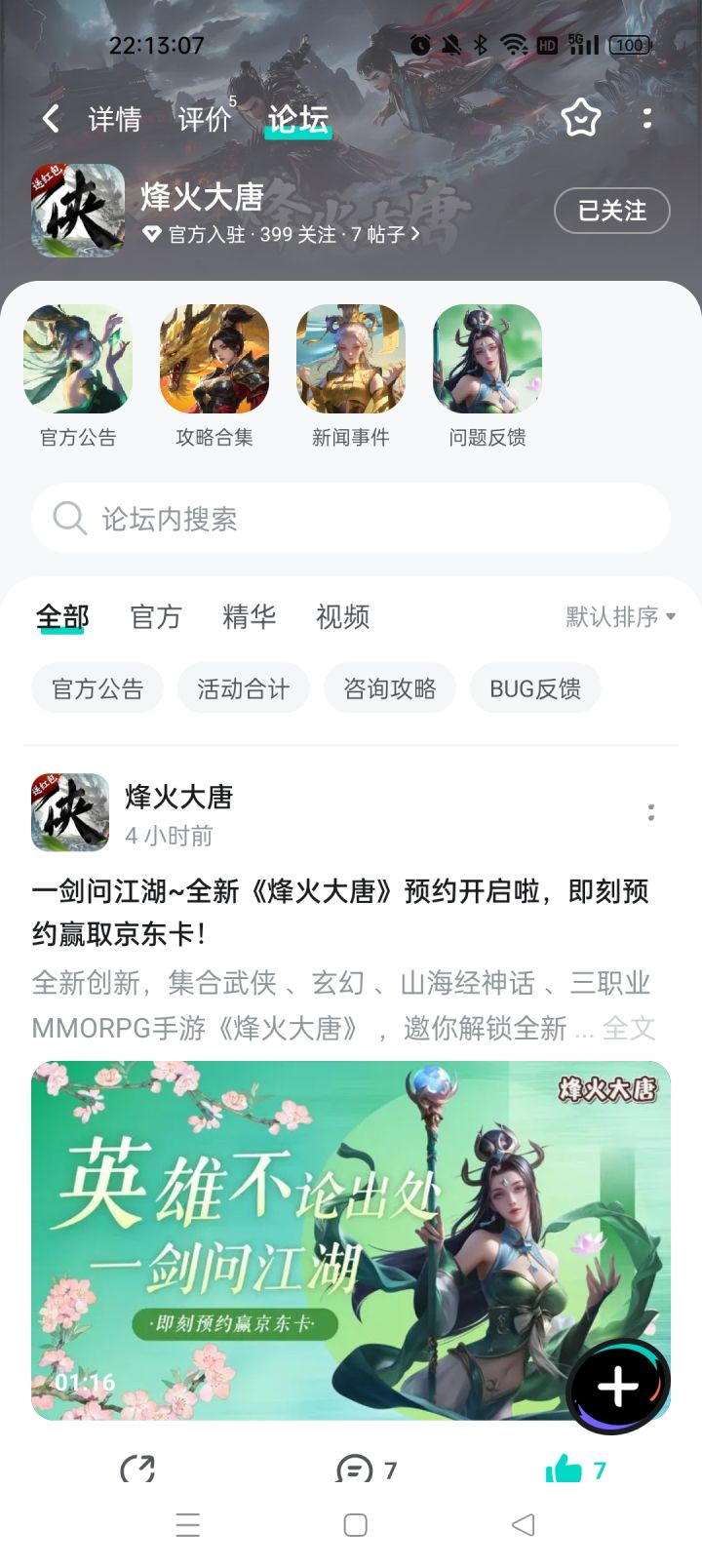 全新创新,集合武侠 、玄幻 、山海经神话 、三职业MMORPG手游《烽火大唐》 ,邀你解锁全新武侠之旅,预约现已正式启动!更有京东卡抽奖福利等你来拿,预约就能参与,惊喜不容错过! 【京东卡抽奖活动】 [表情_比心] 参与方式 1.点击关注,预约《烽火大唐》并发新帖晒截图 2.在本帖下方评论区分享发帖链接即可 【奖品发放】 到达开奖时间后,由taptap系统随机抽取符合要求的幸运玩家,自动发放兑换码