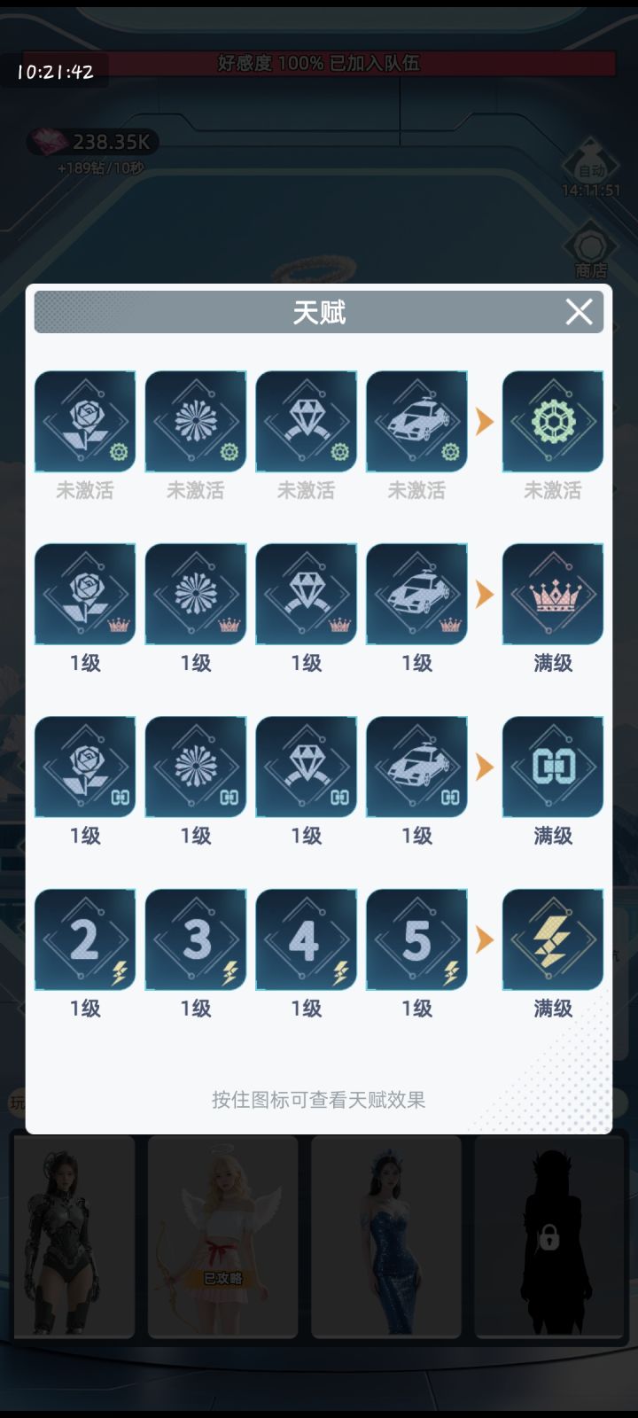 自动套0000欧皇套1113连锁套1119暴击套12221-60关卡共计25天赋点。天赋或者欧车4,连锁车8。这是目前2.0版本推关卡最优天赋的组合。 前期还是要把欧皇套、连锁套、暴击套全点出来,不要一味追求选择欧皇跑车和连锁跑车,不然有可能导致凑不齐3套天赋。大家有什么不明白的可以留言探讨。我也会及时回复