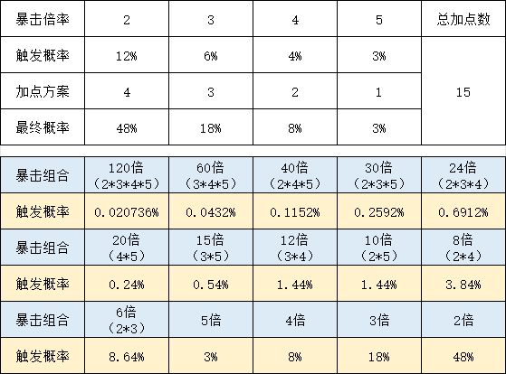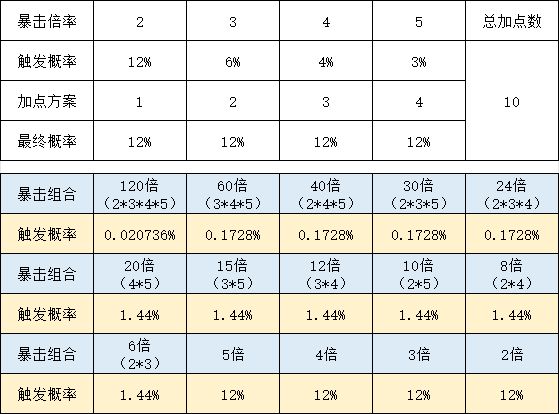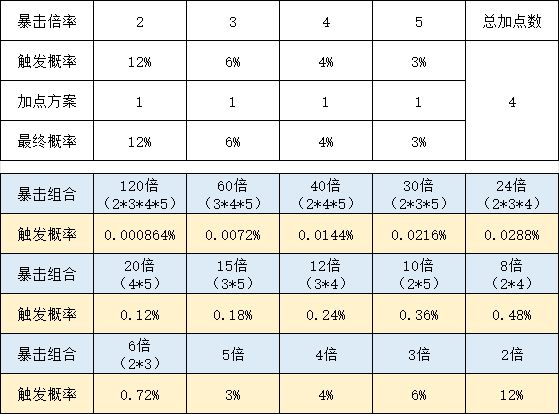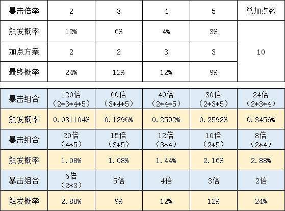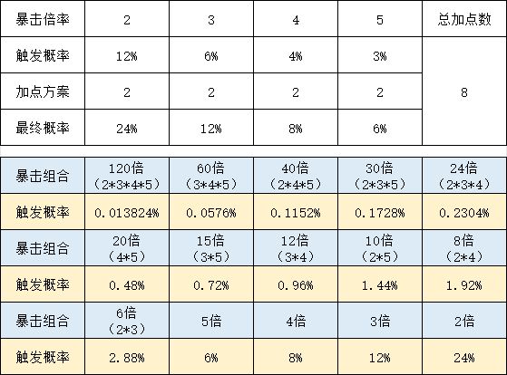结论就是暴击加点越平衡越好,不要单独堆某一个暴击。后期加点方案:自动套一个都别点,概率套和连锁套除了跑车外都各点1级,然后有跑车点跑车,最好都点到3级,剩下的全部暴击套,各个暴击概率尽量平衡着点。