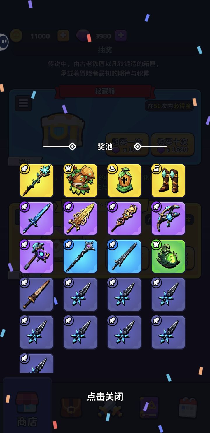 这次更新之前,纯爽,更新后存档没了,打了半天,开局没有多抽到几次主武器强化基本上噶了,属性强化点了半天,属性基本没有成长的感觉🙁抽奖概率也调整一下吧,抽了好几轮了,只有衣服和武器,希望能尽快调整一下数值吧