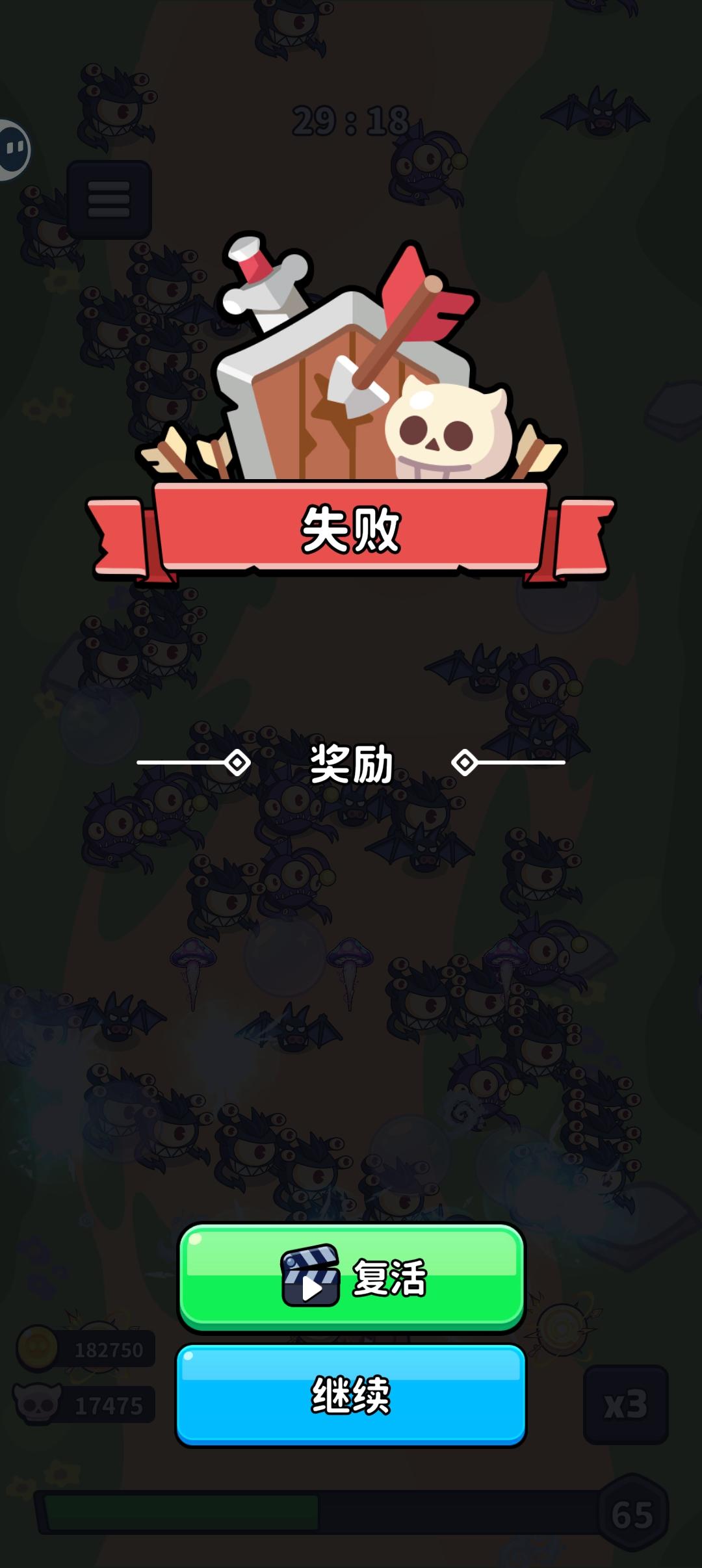 29分钟,不过看广告复活是没用的,试了两次都不会复活
