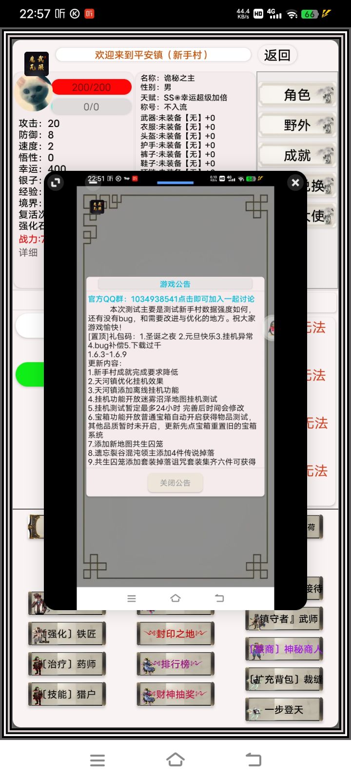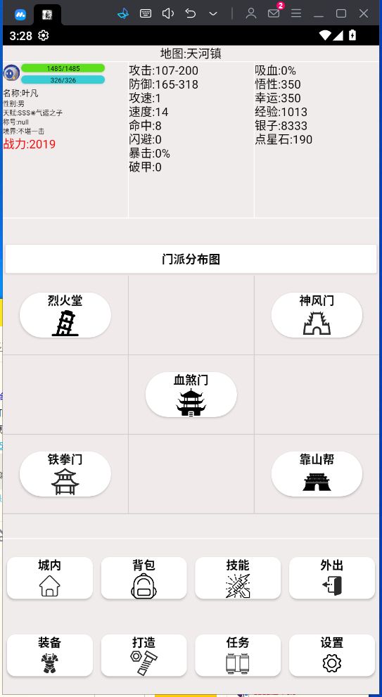 本游戏大纲有七个地图,第一个地图是新手村,相当于试炼场,二图初始属性由一图最终属性来定。一图基本上以完善,还有些小问题待测试慢慢修复和完善。不影响玩。这里发个视频了解下二图玩法,相对于一图的简单比拼数据,二图增加了吸血,闪避暴击破甲攻速等多元素玩法。
