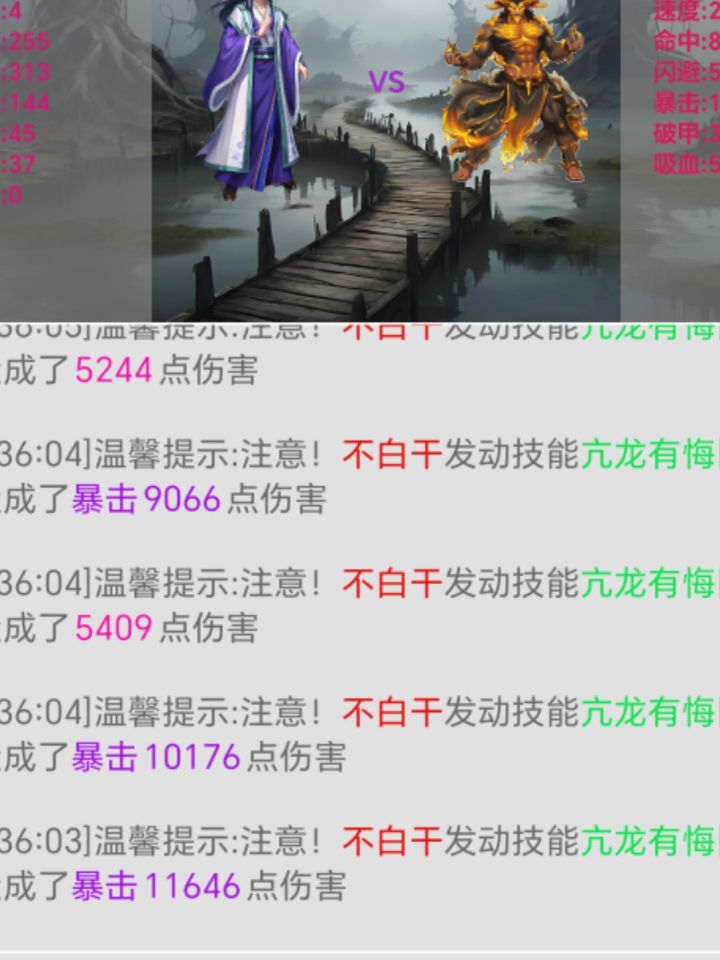 本游戏大纲有七个地图,第一个地图是新手村,相当于试炼场,二图初始属性由一图最终属性来定。一图基本上以完善,还有些小问题待测试慢慢修复和完善。不影响玩。这里发个视频了解下二图玩法,相对于一图的简单比拼数据,二图增加了吸血,闪避暴击破甲攻速等多元素玩法。