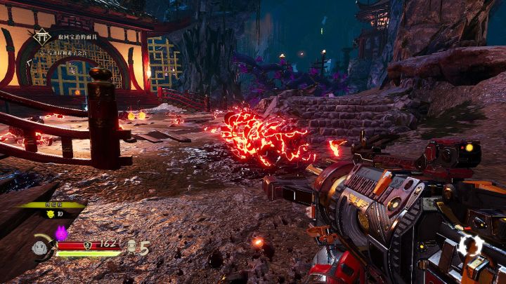 常有些玩家将“影子武士”系列与DOOM系列进行比较,从游戏的玩法和风格上来看,这种比较不无道理。而单就《影子武士3》这款游戏来看,似乎就更有DOOM味儿了,射击所带来的打击感与视觉冲击力非常强,暴力的处决动画令人血脉偾张。不乏科幻感的近未来枪械,射出潮水般的子弹消灭形形色色的东瀛传说中妖怪形象的怪物,穿梭于日式的神社和古城之中,这种微妙的杂糅感倒是与天马行空的世界观相契合——尽管这款游戏的剧情相对而言其实并不算很重要。开场就给玩家极大视觉冲击的龙以及主角王洛则更像是中国元素的加入。