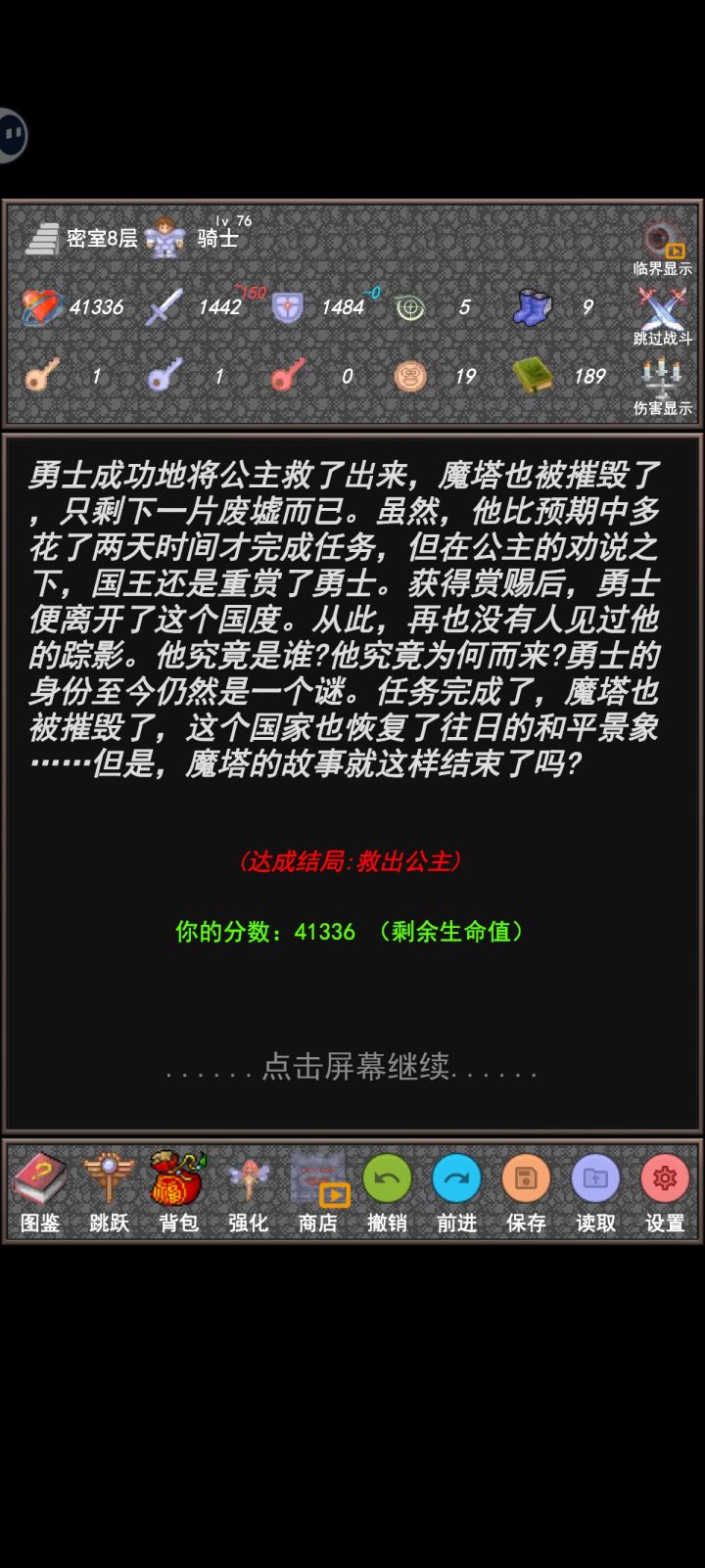 有需要的可以按照截图加点(因为新新魔塔超过 10 万点的数值显示不出来,所以骑士截图左上角生命值少显示了个数)