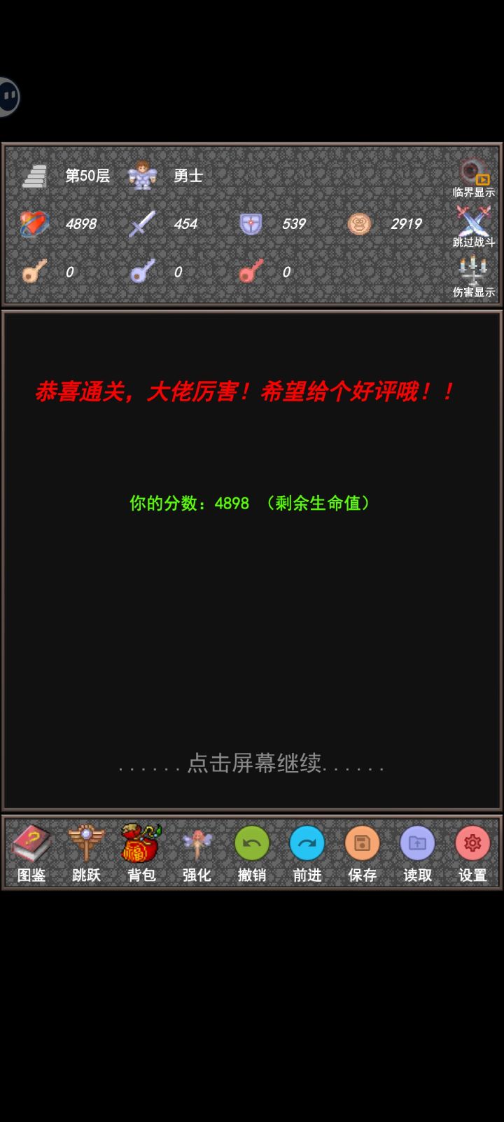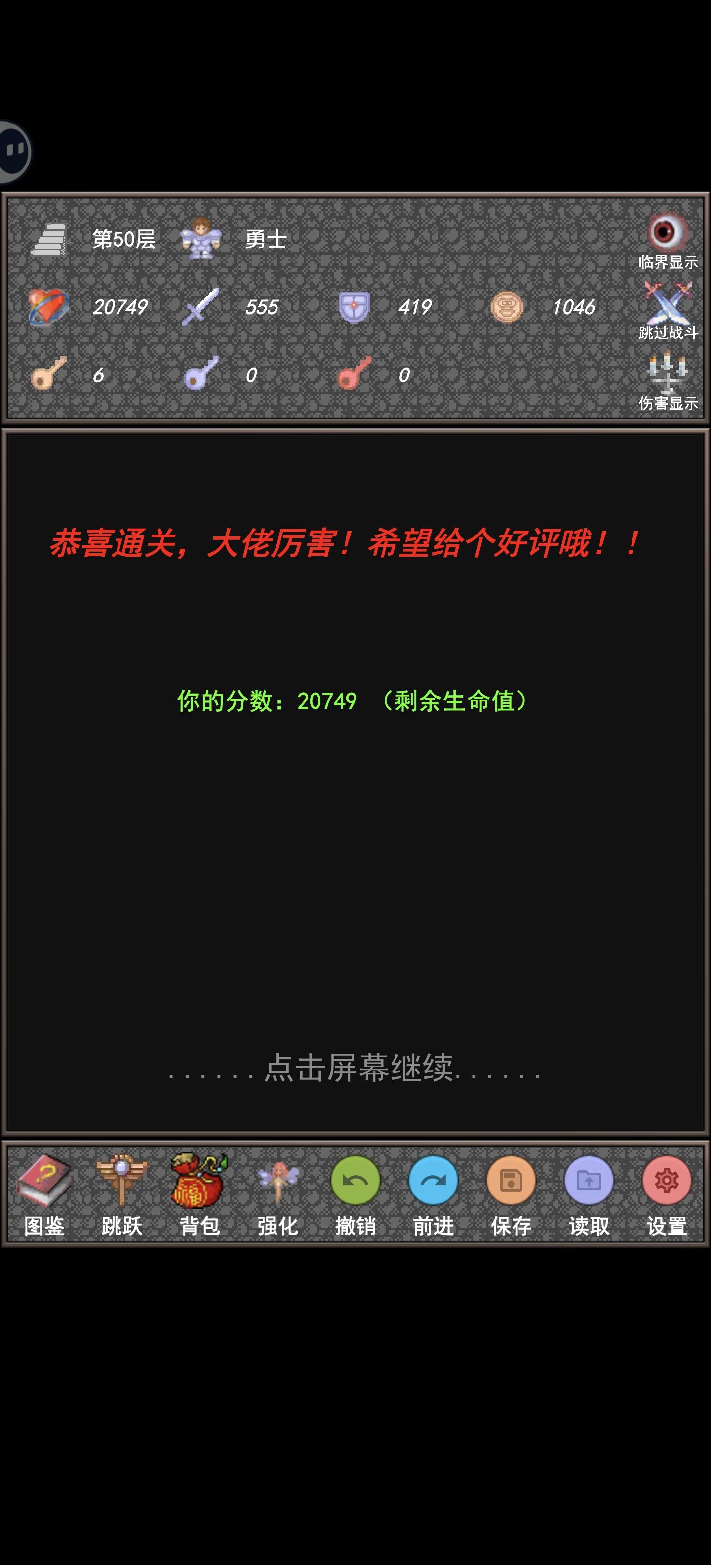 到这里新新魔塔攻略就算完了,有什么问题也可以问我,我看到了会回复,如果有时间后面也会出魔塔 24 层和魔塔 50 层的攻略。