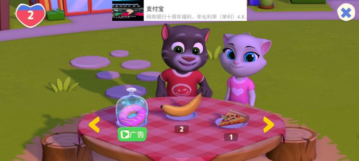 3D卡通画风,角色都来源于汤姆猫原IP,形象非常经典。还原度较高,骨骼动作很丰富,且点击可以进行一定人机交互。不同角色之间也会进行交互,由玩家操作来完成交互结果,有参与感。