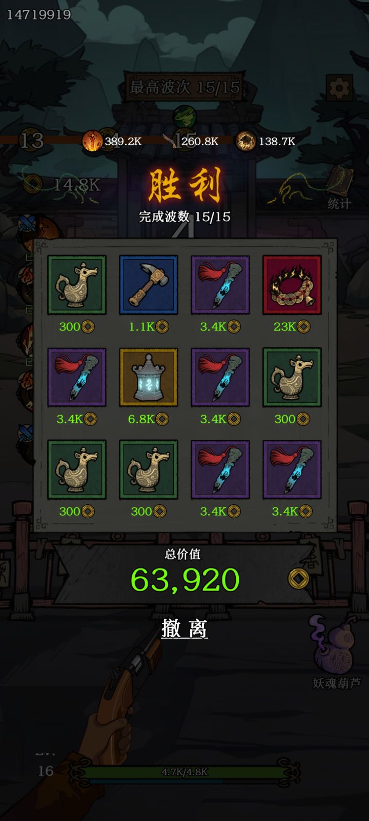如图就打了两关,半夜刷到这个然后有点困直接睡了如题目前测试阶段是免广告的,所以不论是战斗(?)中的技能挑选,还是胜利后的战利品获取,都能最大化自己的选择倾向但这真的是半成品,唯一的优点宝物系统不知道正式上线会不会有改动,因为尝试了一下发现稀有度高一些的宝物也没有明显降低获取概率目前来看就是一个堆数值的游戏,角色可以说没什么成长点,如果拉长时间的话可能会很无聊,因为没有可以刷取的装备宝石材料之