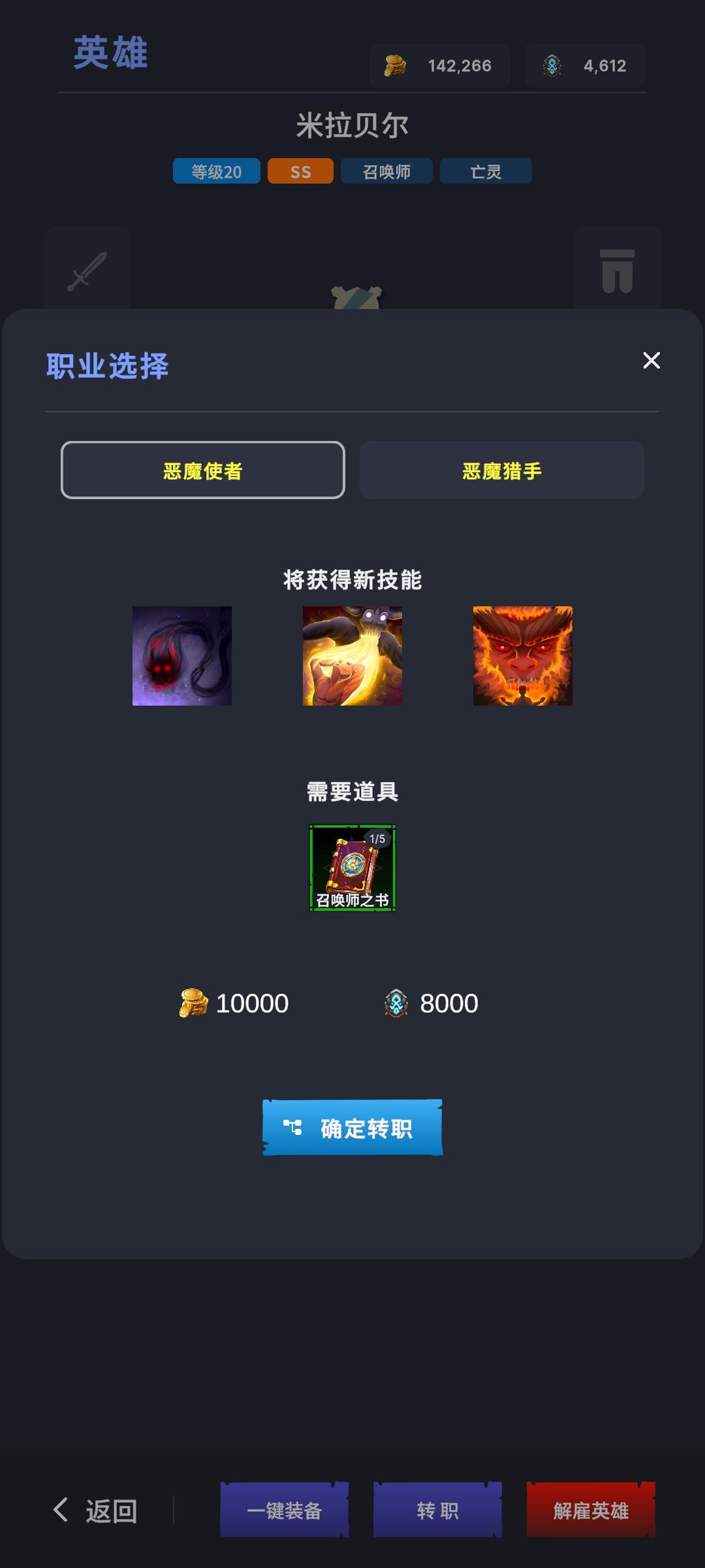英雄职业转职分布(目前版本的情况下):职业名 可转职业(职业定位、特点)战士:1,狂战士(物理输出) 2,守卫者(绝对的肉盾T0级) 3,魔剑士(力法双属性法系输出)法师:1,火焰法师(法系输出) 2,冰霜法师(法系偏控制输出) 3,雷电法师(法系群输出)牧师:1,光明牧师(单体治疗职业) 2,神圣牧师(辅助型群体治疗T0级,必备治疗职业) 3,审判者(辅助型)召唤师:1,恶