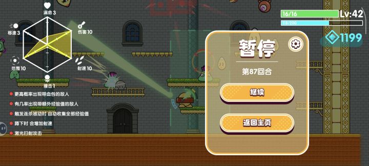 攻击范围、攻速、移速没感觉到用处,如果没有血量、攻击和弹跳的话,宁愿直接下一关