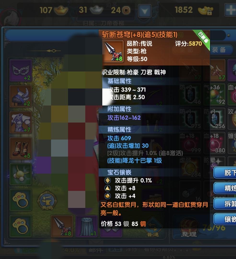 补:60多级合区了人也不多,没打起来,200块钱很容易就赚回来了。只要还剩一个氪佬,他就得买材料强化装备。抢不过别的玩家,去中低级精英,开红抢工作室又不难。