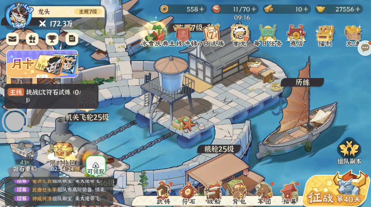 第4天,主线推到了43,500抽保底吕玲绮,感觉吕玲绮不是很好用,战船设备刷到个4,华佗非常好用,就是组队经常组不到人