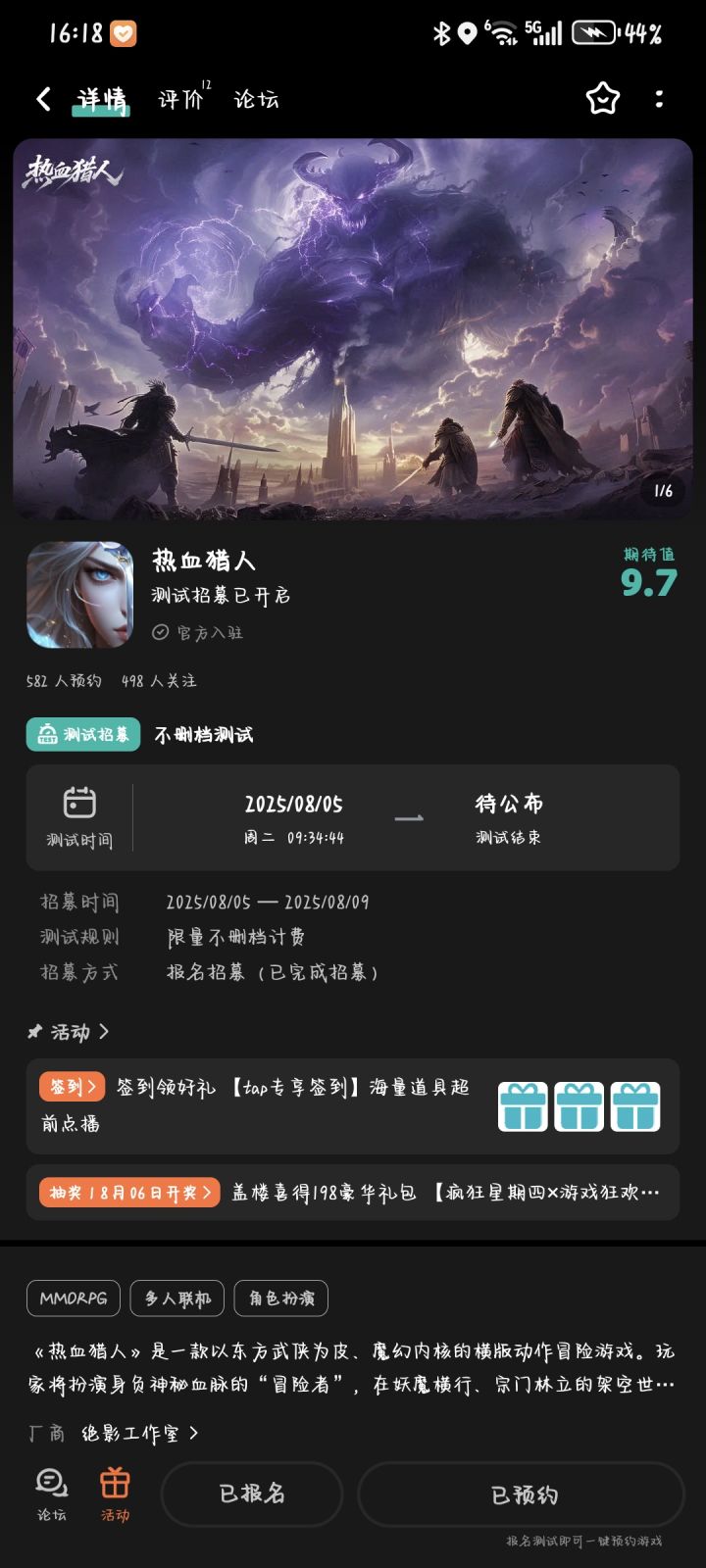 亲爱的猎人们:微风拂过奇幻大陆,新的冒险即将启程。《热血猎人》新版预约正式开启!我们诚邀您踏上这段充满未知与挑战的旅程,与我们共同期待新版本的到来。为感谢大家的持续关注与热爱,我们特地准备了 2张50元京东卡 作为献礼,只需回帖即可参与抽奖,让好运为您的冒险之旅增添一份惊喜!【活动奖励】50元京东卡*2【活动内容]1、预约后转发本帖至个人动态2、回复本帖:转发截图【活动时间