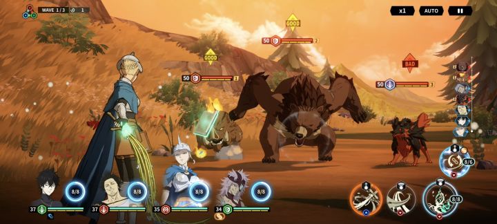 画风和画质肯定没得说,这是原作动漫手工画原画风的,反正肯定不会是AI画质,有保证,游戏玩法机制也没得说,个人非常喜欢这种类型的策略回合制游戏,他的玩法和机制,非常的流畅简洁,也是非常的实用的一种类型,当然沙盘战棋也非常的好,但是个人感觉战棋游戏需要先走位走格子,然后再放技能操作起来有点麻烦复杂,没有这个那么快速流畅技能特效那就更没得说了,技能和大招的释放非常的流畅快速迅速,如刀光剑影之间,技能的