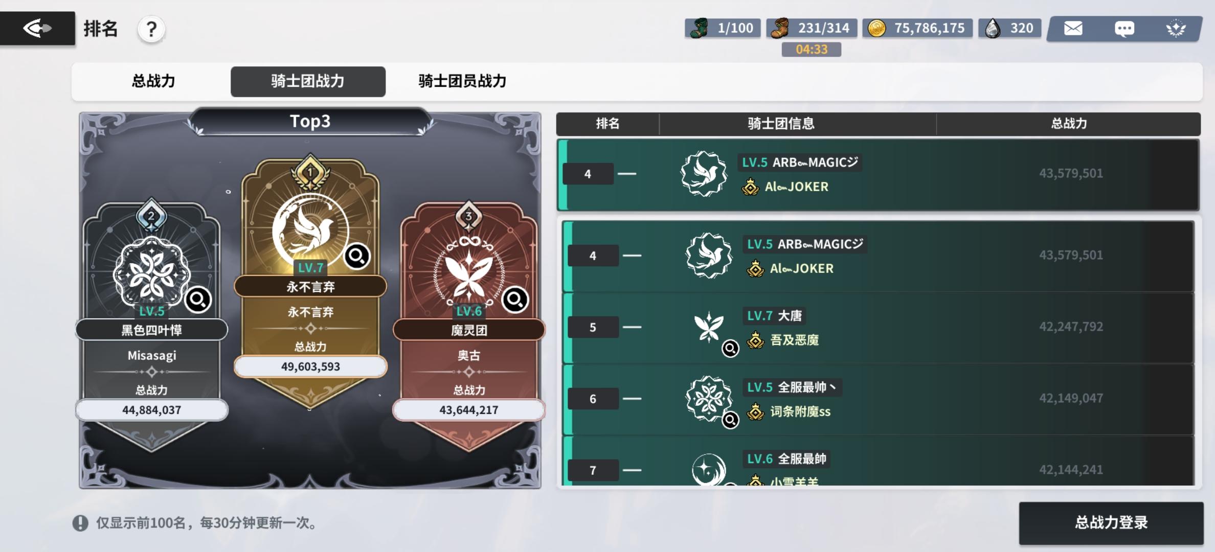 排名第四的公会正在招募活跃玩家。军事力量必须达到200万人。公会等级:5。每天赠送5张免费门票。