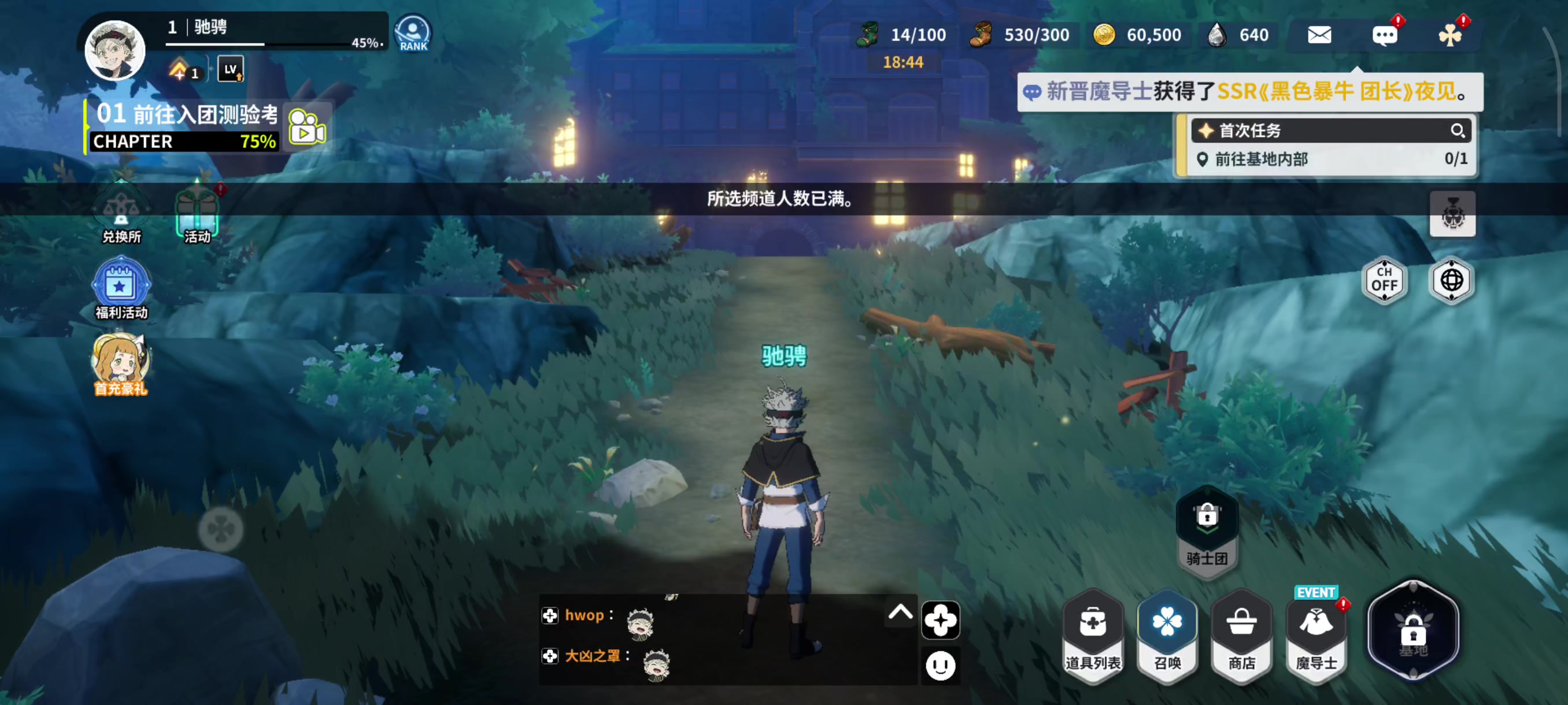 所选频道人数已满是什么意思?我都玩了一会了#黑色四叶草魔法帝之道