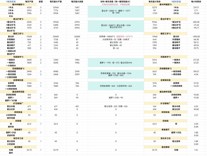 图1:末影城生产消耗图2:祈愿神殿订单图3:七原罪贸易单图4:生产消耗剩余图5:角技能和等级突破消耗(需补充)
