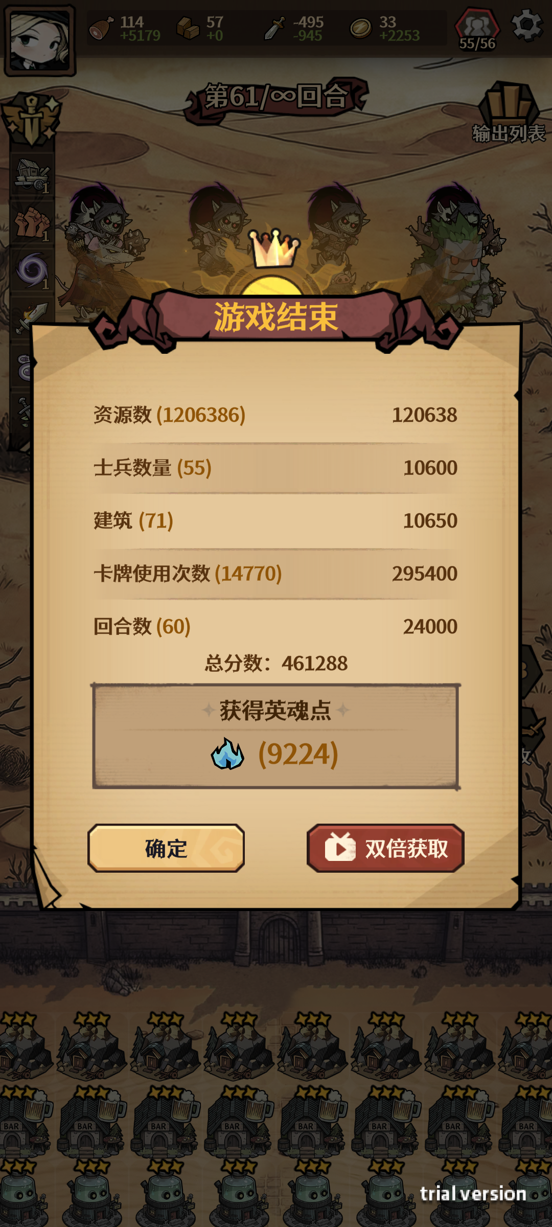四十波最大收益。梅丽特性,每回合都有跑商,核心是利用跑商规则买卖,开局先升两级锤子,只用免费抽,先升木头资源,木头升科技用完就行了,食料和武器可以全卖,记得再卖之前保证没有钱可以用免广买一个兵买一个建筑,优先级木头,其次食料,最后武器。(先升科技的目的是为了找金矿和棋牌室) 《棋牌室》: 每回合给一张卡非,魔法卡,满级给三张卡,理论上最低等于一次50块抽三张卡,金矿或者酒馆无论怎么搭配最大值不