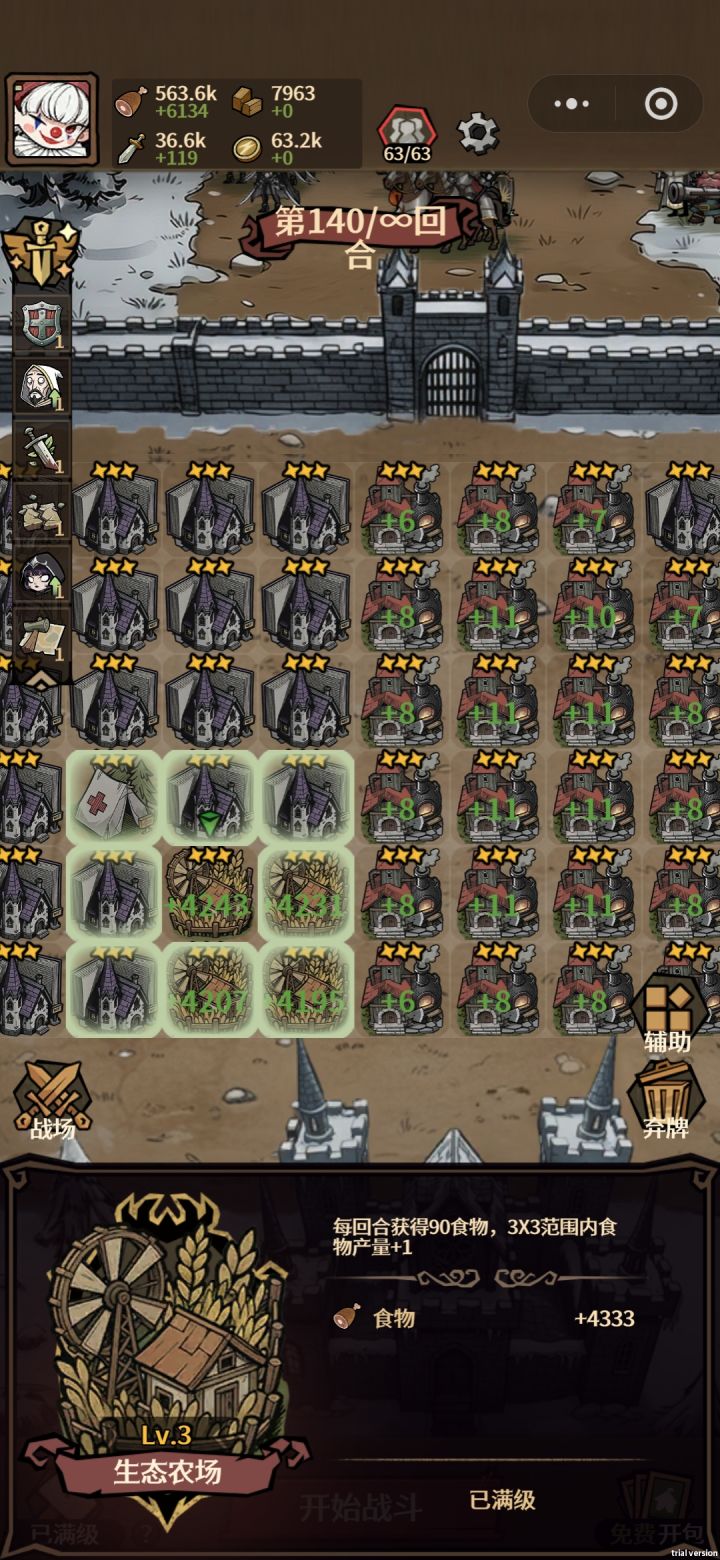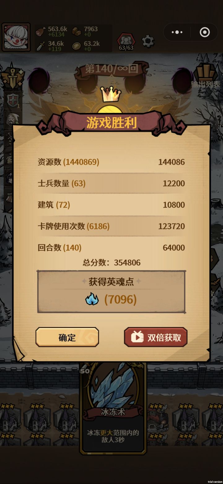 雪地玩不了!!!叠血量还是挺有意思的,正常玩随随便便到一百多,后期就要看手法了,前期中期依靠铁壁、咒术和治疗赖血量,可以单挂底角选防御。前期用免费守卫和牧师过渡,所有带奴隶的建筑都别碰,第一波商店很关键,3抽原则(也可以直接开赌,想玩的爽没抽到直接下一把),抽到泰坦直接把兵全卖掉,只留牧师,必要情况可以上个祭司(只上4牧师和一个祭司,事件卡看情况选额外敌人的),不过后排基本保不住,一直赖到后排开局