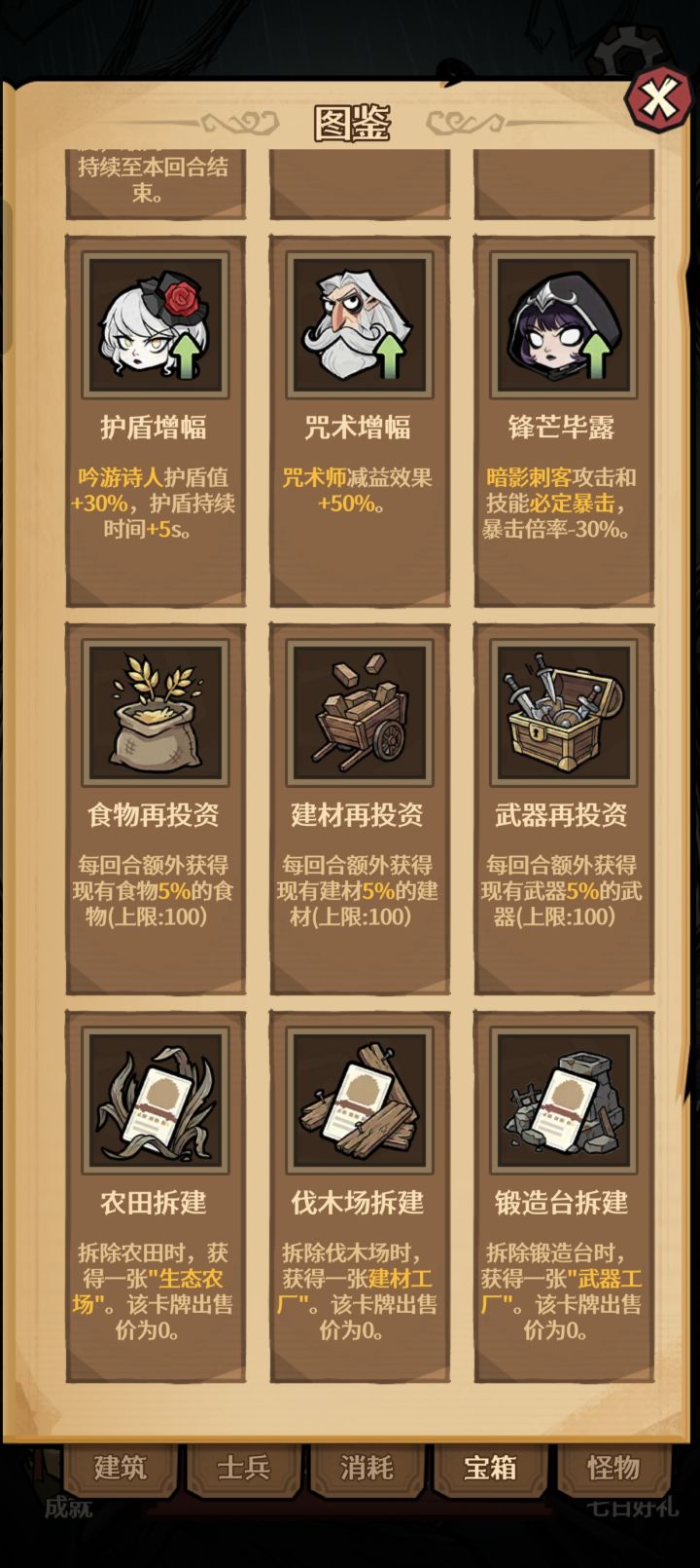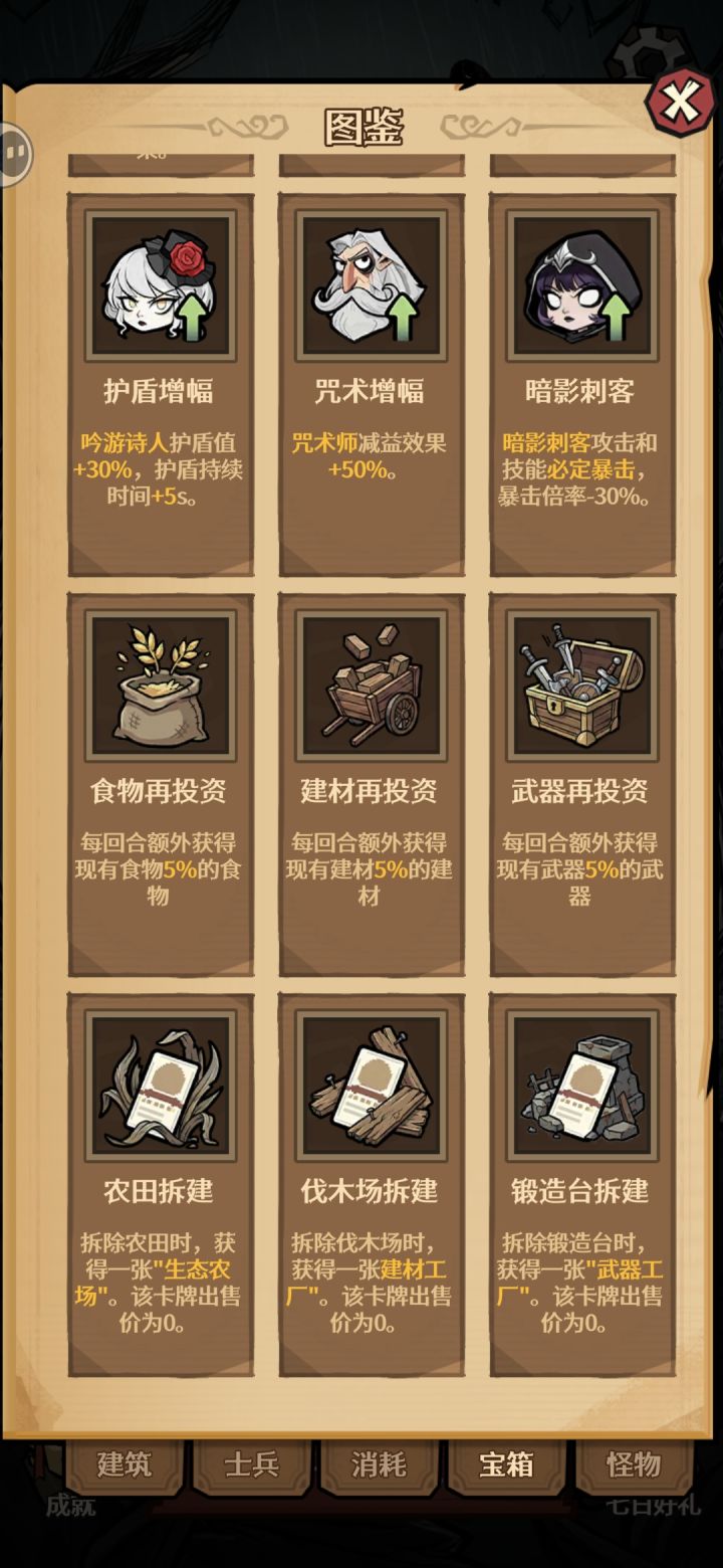 按粮食来算的话Lv3研究院增加(5*5-1)*3=72,再减20维护消耗,只有52。一个Lv3的生态农场90+3*3=99,再加上周围八个农场对它的增益+8,一共是107个,是研究院的两倍多。如果不是非常需要手牌上限的话,研究院完全是没必要的存在。建材同理。至于武器,由于武器放置需要消耗金币,在前期放置多个武器工厂且缺乏金币情况下,是可以使用研究院作为增益装置的,但是等到局内等级升满10级