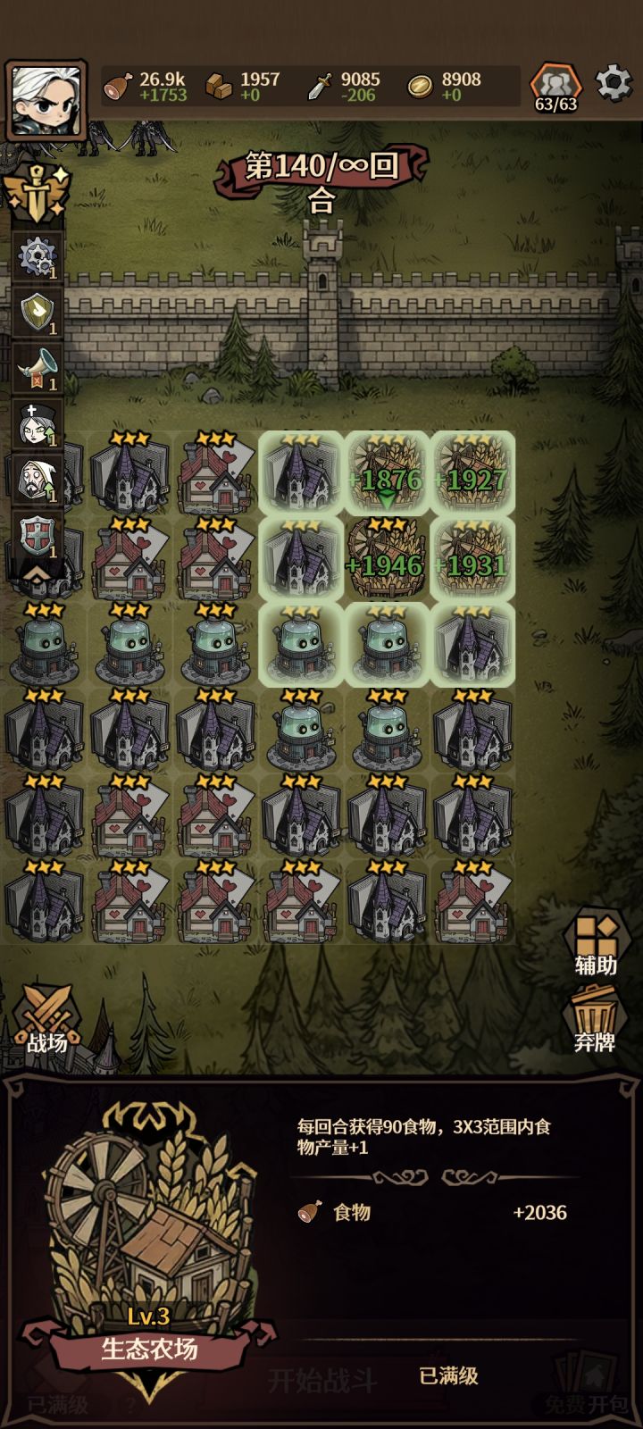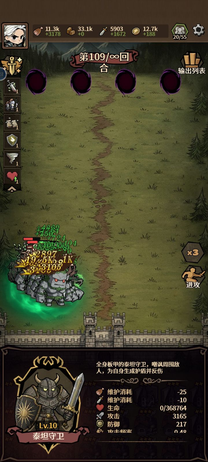 雪地玩不了!!!叠血量还是挺有意思的,正常玩随随便便到一百多,后期就要看手法了,前期中期依靠铁壁、咒术和治疗赖血量,可以单挂底角选防御。前期用免费守卫和牧师过渡,所有带奴隶的建筑都别碰,第一波商店很关键,3抽原则(也可以直接开赌,想玩的爽没抽到直接下一把),抽到泰坦直接把兵全卖掉,只留牧师,必要情况可以上个祭司(只上4牧师和一个祭司,事件卡看情况选额外敌人的),不过后排基本保不住,一直赖到后排开局