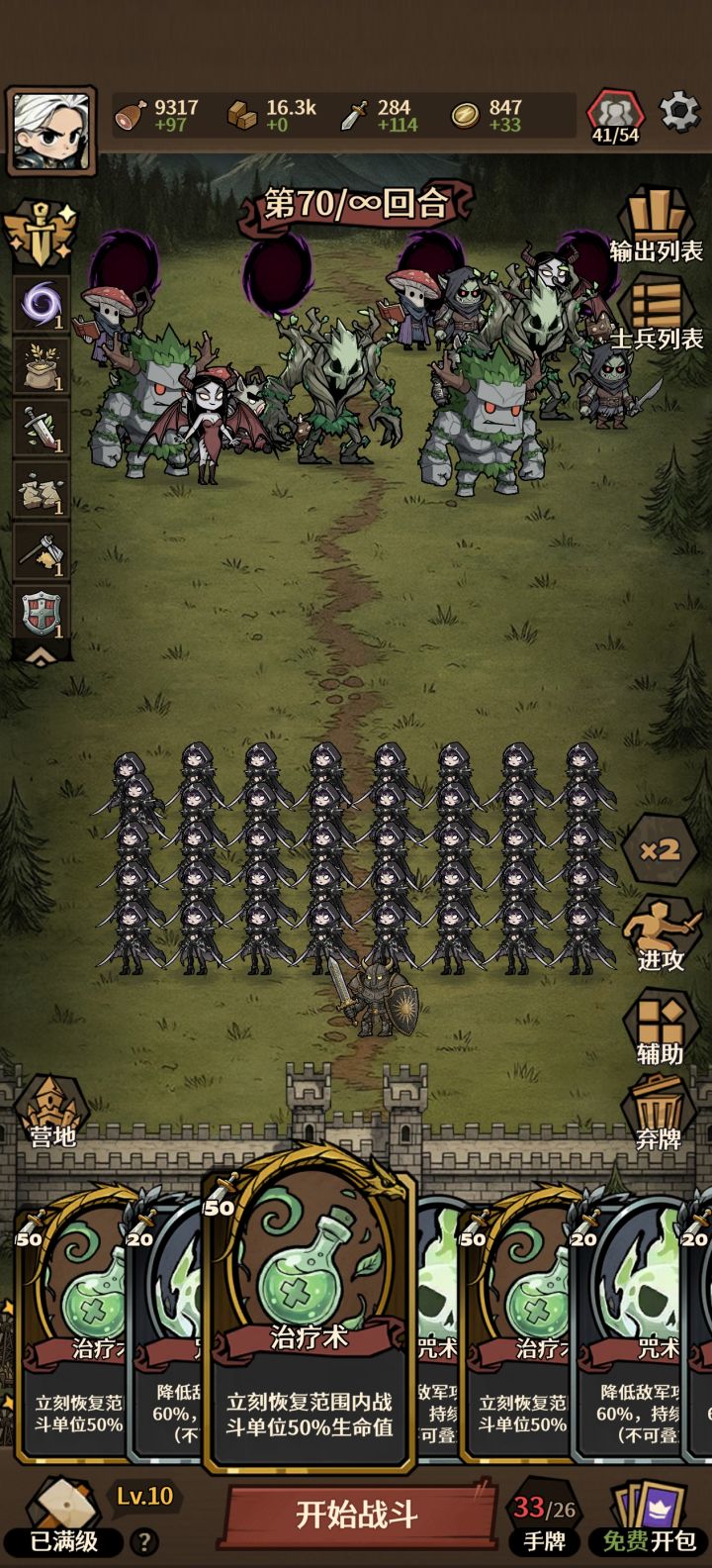 40刺客+一个盾。前中期好玩,后期就剩重复操作了有点乏味,可以通关。