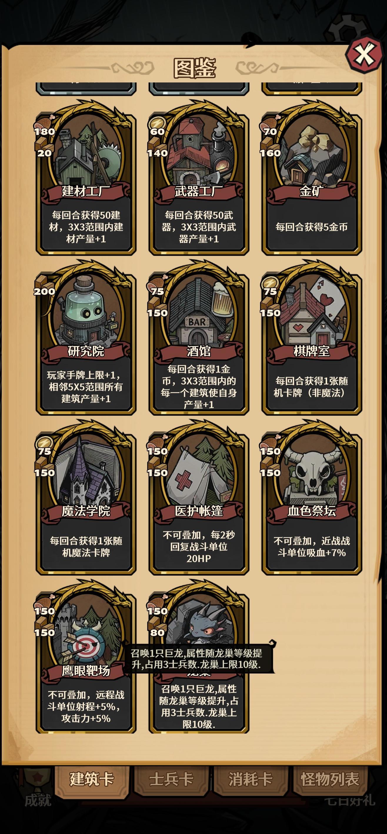 攻略讲前三四回合民兵硬抗,第四回合下龙巢。你天赋没点才两民兵打得过谁,点天赋民兵才多,200一个600两个。一把600-700左右天赋前期也别想着单龙民兵硬抗,你不时不时上点兵怎么暴毙的都不知道5-6本刷金卡,但你提前刷金卡又升不起……造不起……还得是初始一二级粮食木头建筑过渡奴隶建筑开局过渡,3金币利息一座,等准备屯金币的时候卖掉酒馆金矿加金币……前面造一两个科技场所加卡牌上限,满
