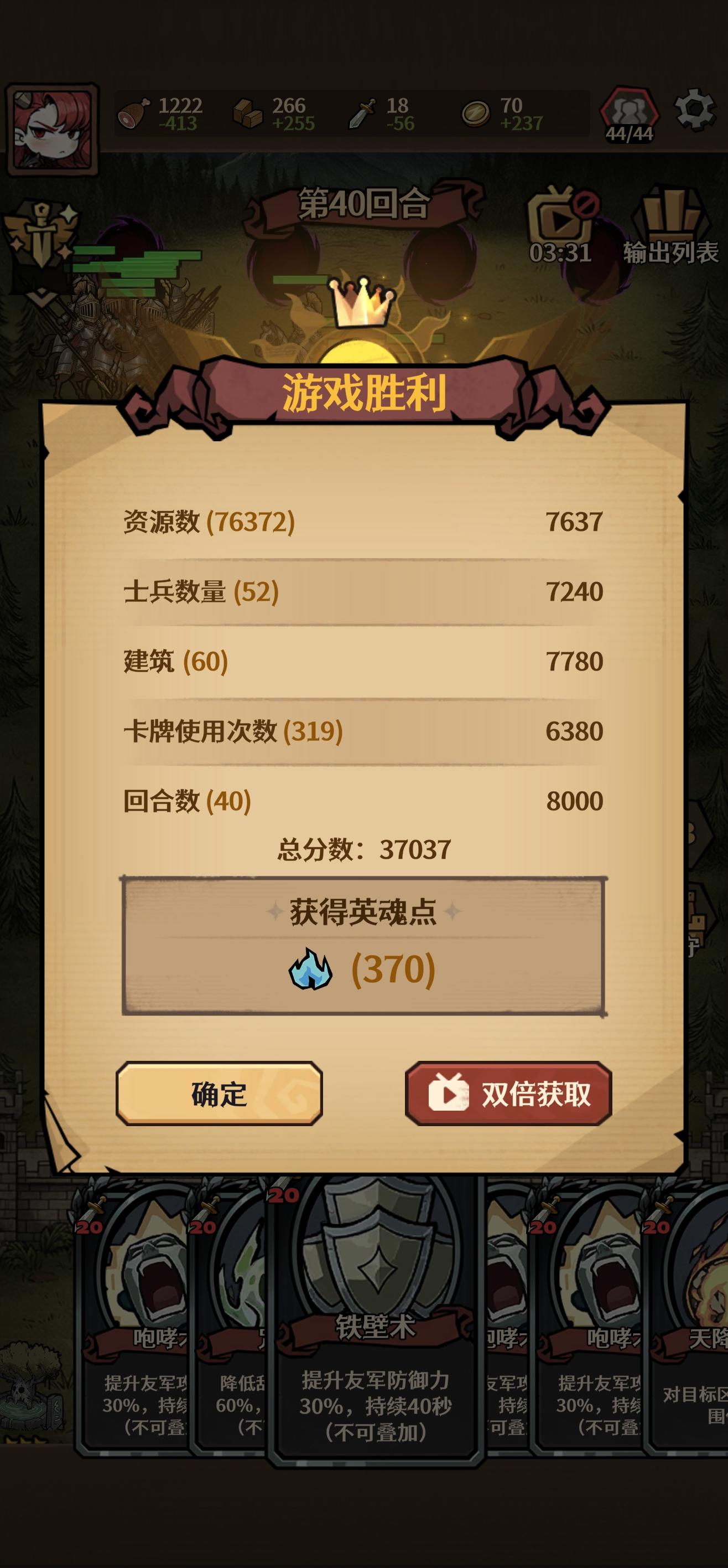 基本上没点加成,只把获得英雄点点满了。想着发育。结果这把看了广告无压力过了。不需要加成。然后都通关可我还打啥