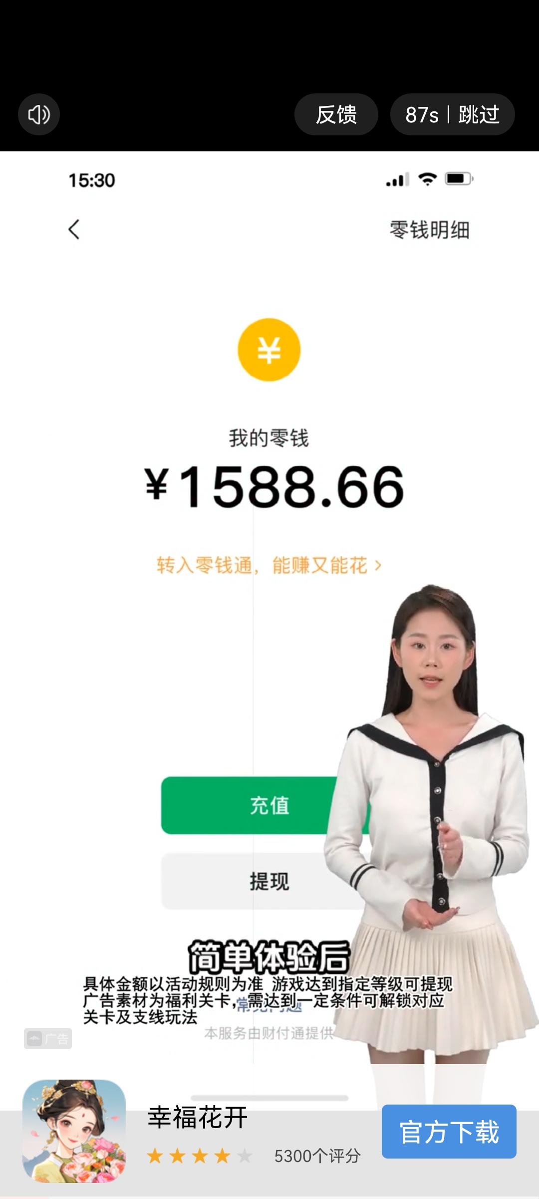 关于怎么跳过广告的教程:1、出现图一这种广告的时候,点击我要直接拿奖励2、会跳出图二,这个时候不用点击下载游戏,直接切屏,如图三保持图三切屏状态15秒(按照提示的观看时间来)3、然后返回广告如图四,可以看到右上角有跳过俩字了,左边小❌点掉这个白色框,然后就可以如图五点右上角直接跳过,如果是自动转跳小程序的广告,直接小程序划拉走,还是保持切屏操作如上
