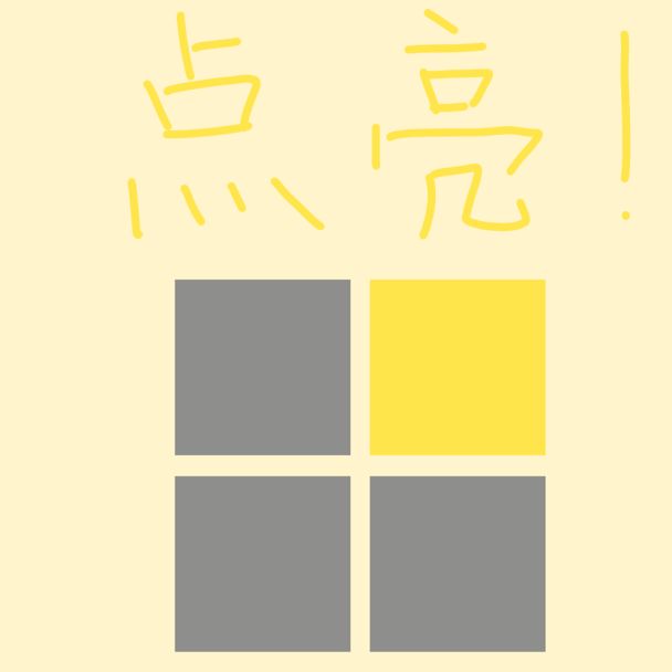 这是一个通过点击一盏灯来切换其自身以及上下左右相邻的灯的状态,直到全部的灯熄灭或点亮的游戏。本游戏无广告,无内购,不请求系统权限,无需联网,比较适合无聊的时候打发时间。