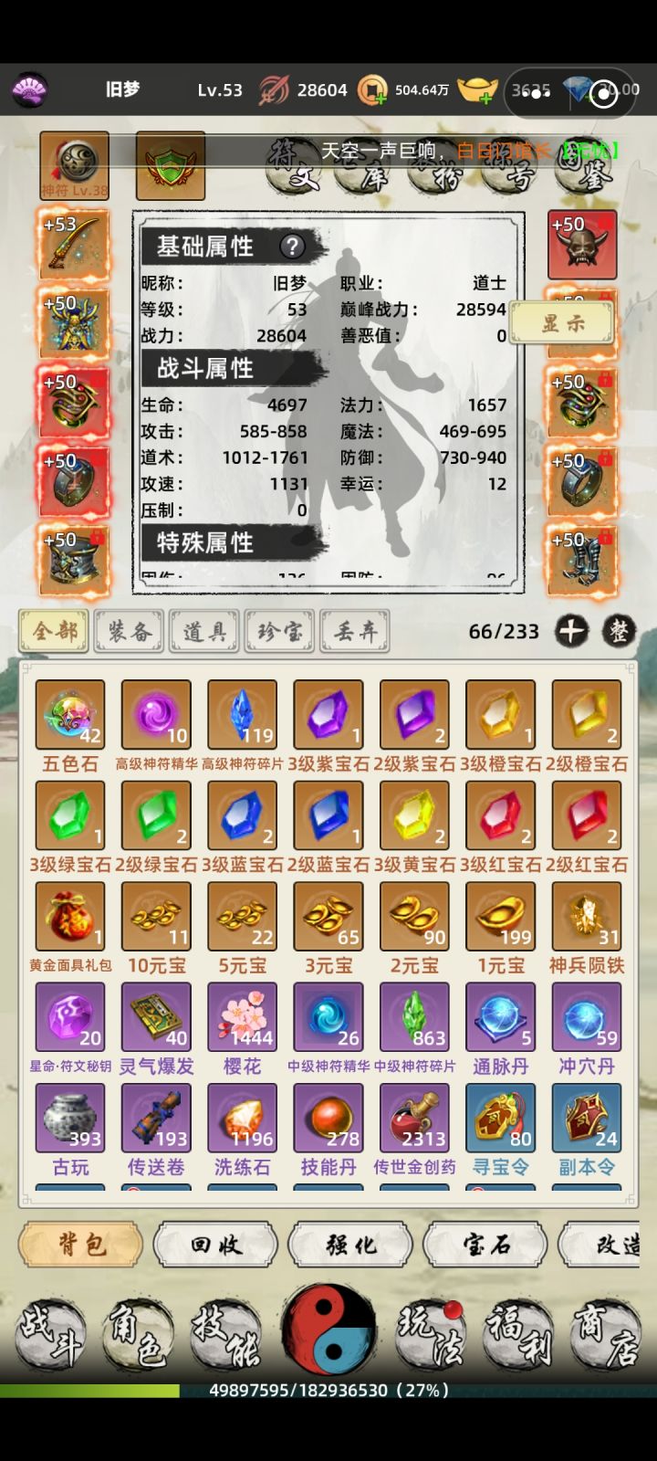 买了2个特惠礼包都没有.元宝扣了没看见东西。每次挂机包袱一下就满了.点了自动回收都没用