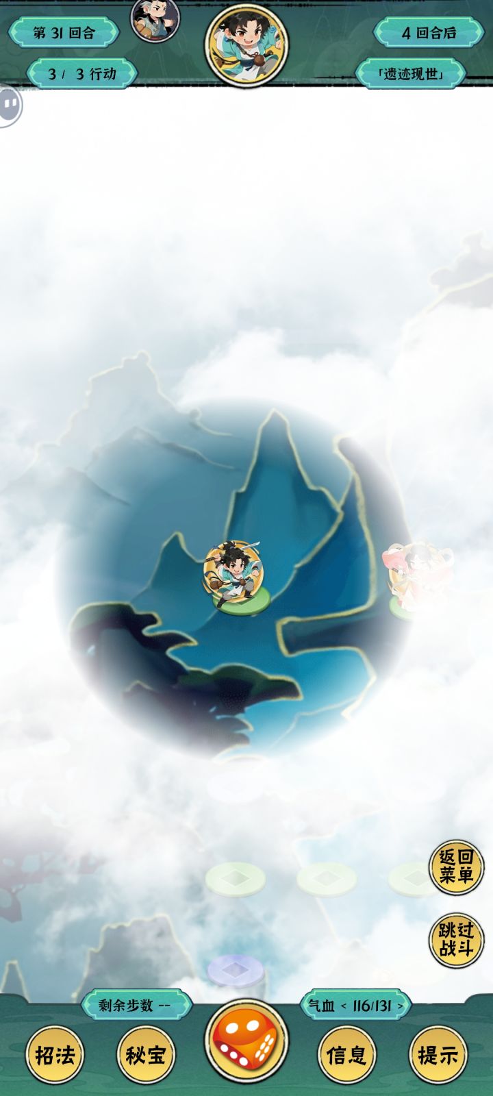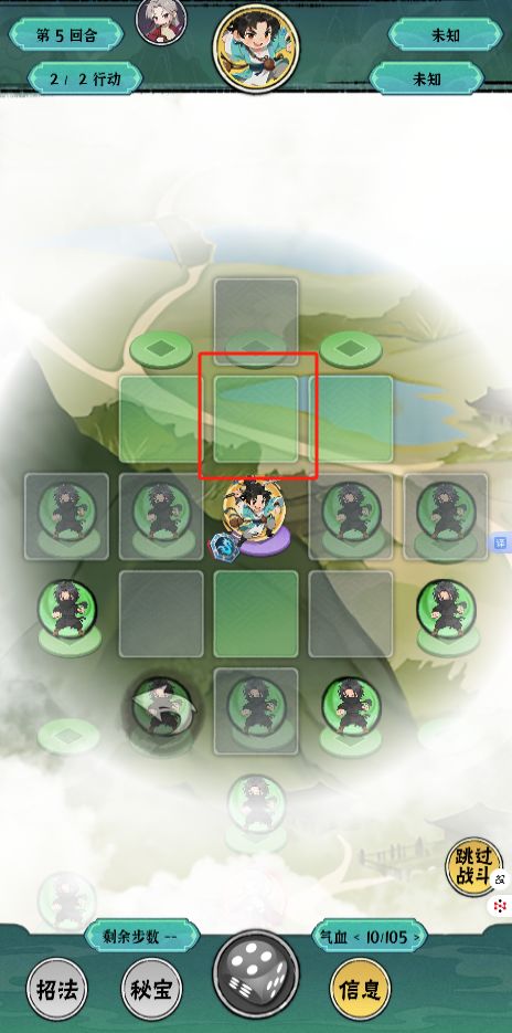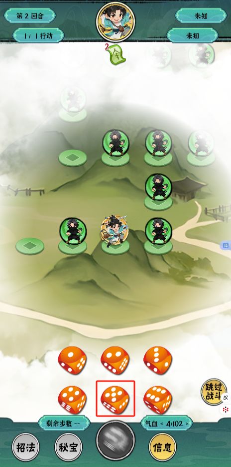 如图: 请在拿到自选骰子后,分别定向选择【5点、4点】。最后搬山符释放在地图上方隔断处,并控制最后一次移动不要走到坍上方两行格子上(防止坍塌死亡)。指导关卡本意是让新玩家快速了解游戏内的操作,善用道具、残血时规避战斗,快速上手。受限于个人业余开发,经验不足请多包涵有关于游戏任何建议可以单独发帖或回复到本帖后,老萧会及时回复。也可移步刚建的QQ官群: 728275742