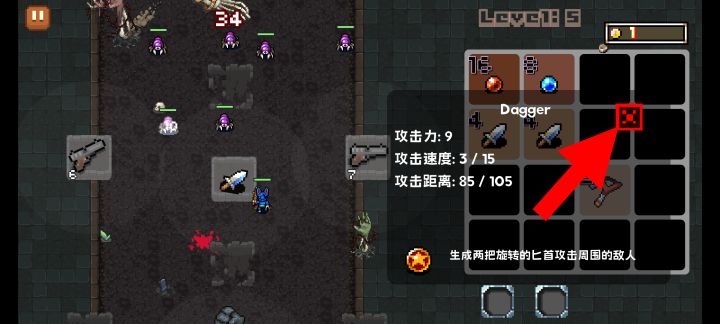 使用星级道具,可以解锁武器技能。该道具需要用匕首击杀 10 个敌人才能解锁(之前版本是 100 个,更新最新版本) 另外商店也有机会刷出星级道具哦
