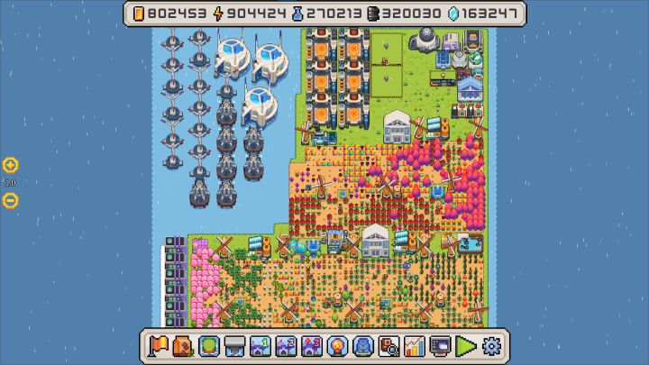 海岛机器人农场中最重要的就是种田。你可以从一小片土豆田种起一直种到完成探索火星任务。不过在这里你也不需要自己种田,给机器人分配了任务后,它们只要有电并且开心就会永远的工作下去。要多建立机器人工厂,多造机器人,生产力是很重要的。没有足够的机器人可是会出现菜没人收,地没人种的状况。游戏中的海域也需要购买,买全之后你就有一片方方正正的9*9大海域。后期的海域购买除了资金还需要原油,变异碎片等资源。