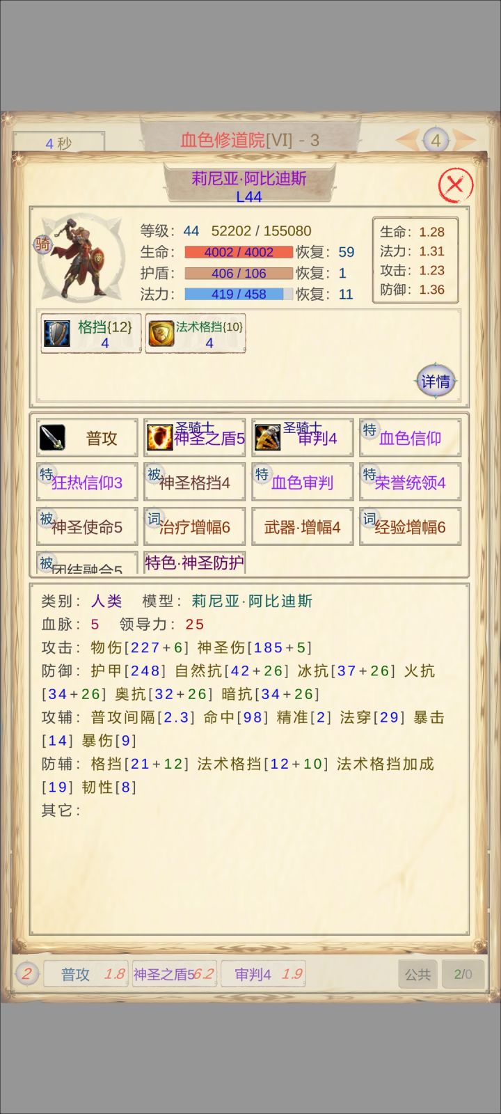 请教下各位大神,挂机600+了,没刷到我想要的双神圣+纯净体质+团净化的。手动抓到两个如图,我该怎样选择啊?一个是有双神圣,没有纯净体质和团净化。一个没有神圣格挡,其它三个都有。在这个过程中我发现莉尼亚只要被净化一次,她的神圣和物攻就会增强一次,因为血色成员有血色信仰这个技能所以莉尼亚如果自带团净化,基本上就是2秒左右增强一次。我在监狱设置里是不是可以去掉纯净体质,选择双神圣+团净化这样更容易刷到