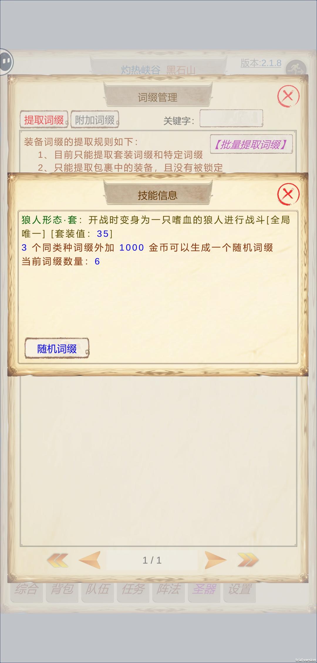 2025-12-231、修复了被禁用的技能石在拆下时,无法与已有技能石合并和使用的错误2、修复了生成的装备偶尔丢失一个属性的错误3、修复了交易后不更新快捷菜单数量的错误,修复了深渊挂机吹号角后数量不刷新的错误4、修复了刷装备属性时可能卡住的一处错误5、尝试修复战后不自动使用神圣之水的错误6、装备私有过滤中添加了统一的最低极品值设定,同时单个装备过滤中也添加了极品值的设定,优先级大于统一