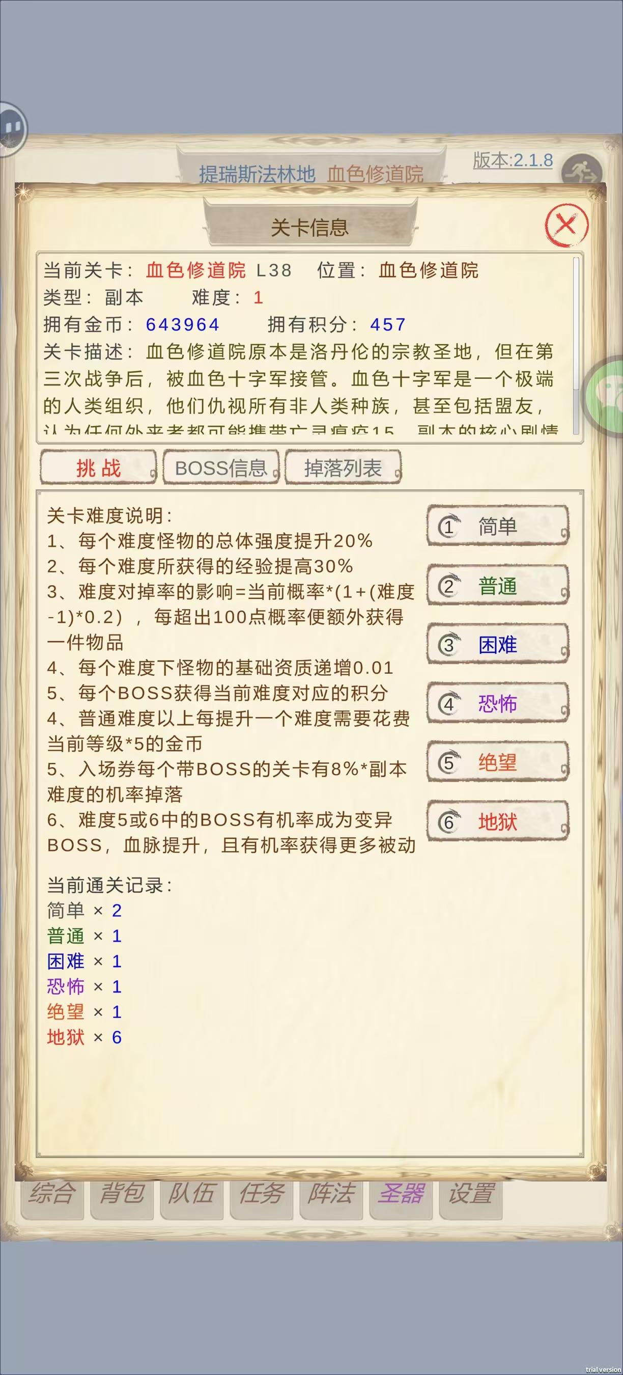 2025-12-231、修复了被禁用的技能石在拆下时,无法与已有技能石合并和使用的错误2、修复了生成的装备偶尔丢失一个属性的错误3、修复了交易后不更新快捷菜单数量的错误,修复了深渊挂机吹号角后数量不刷新的错误4、修复了刷装备属性时可能卡住的一处错误5、尝试修复战后不自动使用神圣之水的错误6、装备私有过滤中添加了统一的最低极品值设定,同时单个装备过滤中也添加了极品值的设定,优先级大于统一