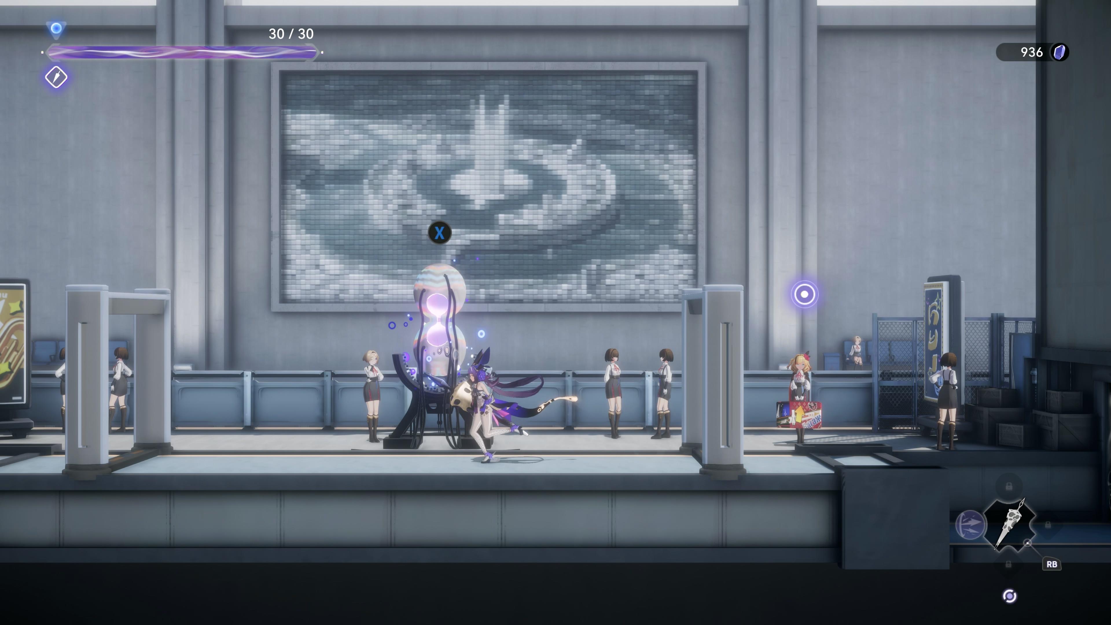 同时作为一个类银河恶魔城,本作的地图也是将一个学院分割成不同的区域。而且在游戏的初期,角色的能力一般,受限只能前往一些没有限的区域。但在击败boss,或者到达时间间隙获得新的能力后,就可以通过新能力去“打开”之前有限制的区域通道,进入下一个区域并重复此循环。