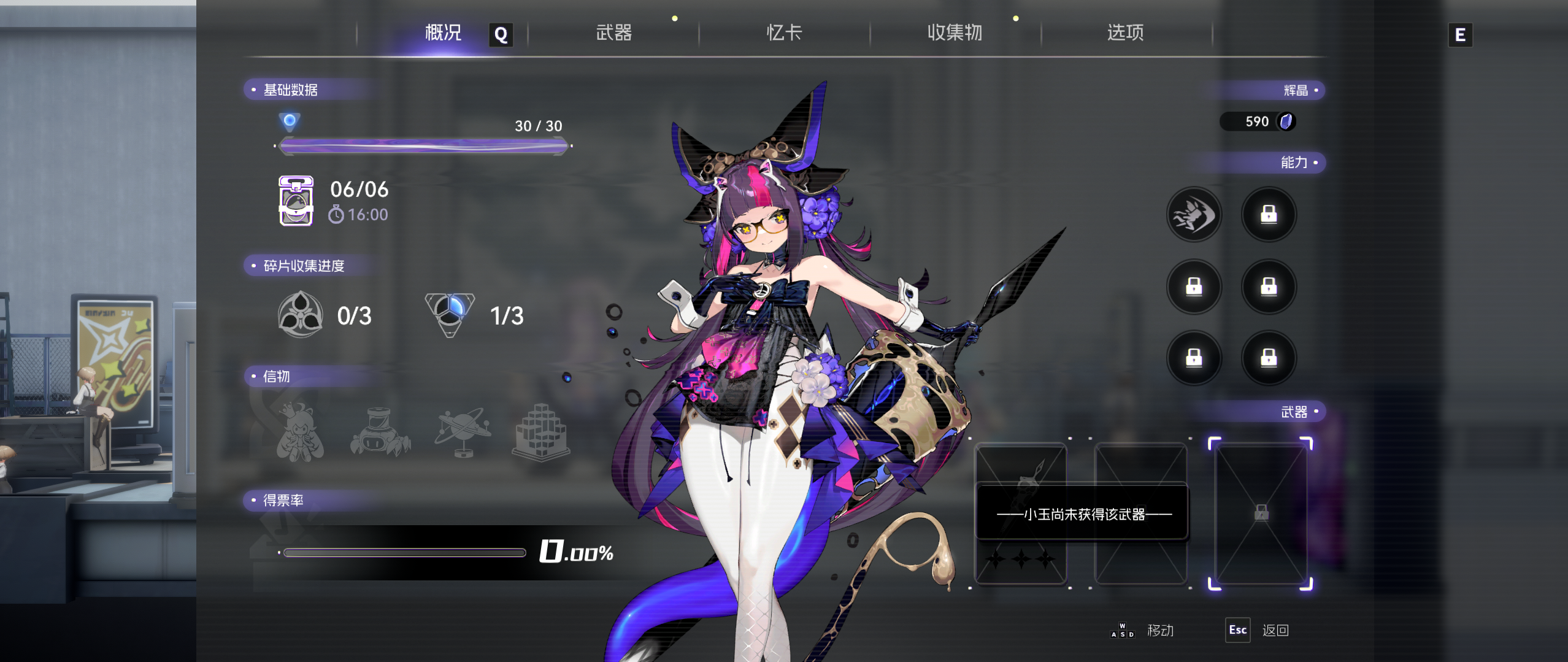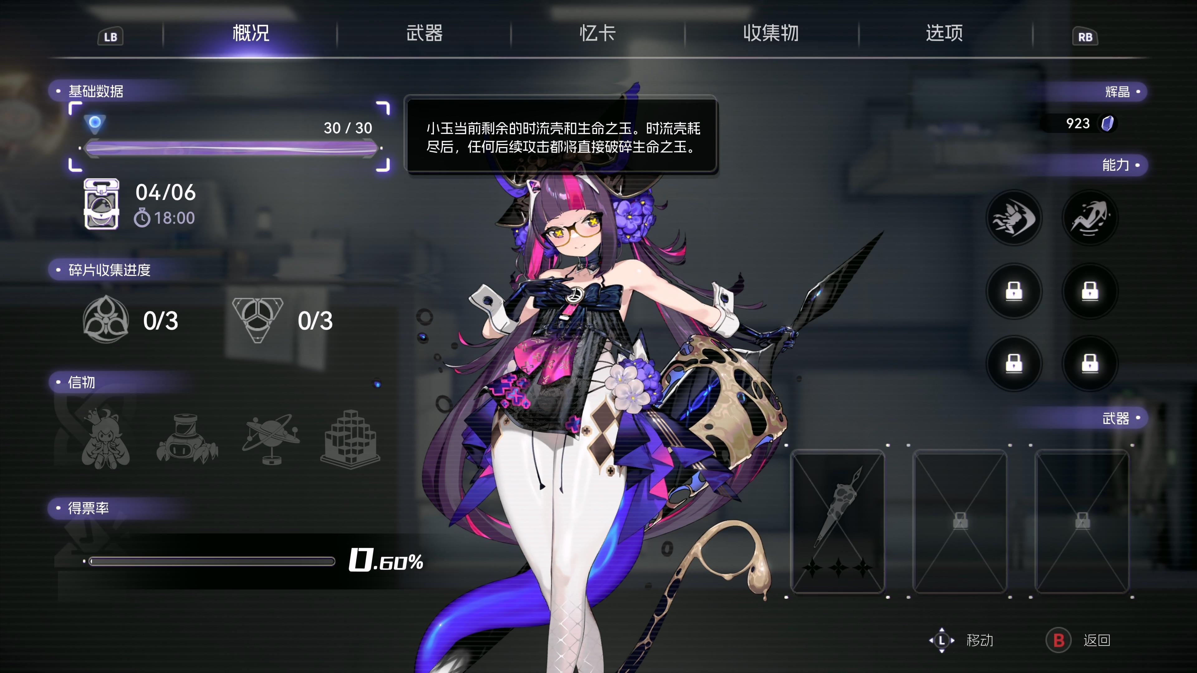 试玩版并未打通,不确定开放了多少内容,但从角色概况的UI上可以看到整个养成架构。没有等级的概念,有两种碎片收集徽记,每个都需要三个碎片来凑齐成为一个完整的。信物有四个,从外观上可以看到差别,具体属性未知。能力槽位有六个,应该可以自由搭配,可能和武器设定有关。