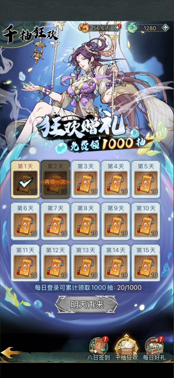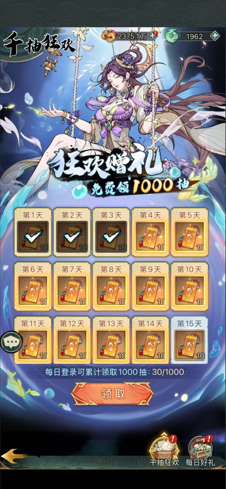 游戏福利很顶,进游就领1千抽,爆率也是高的吓人,很久没玩过这么良心的游戏了