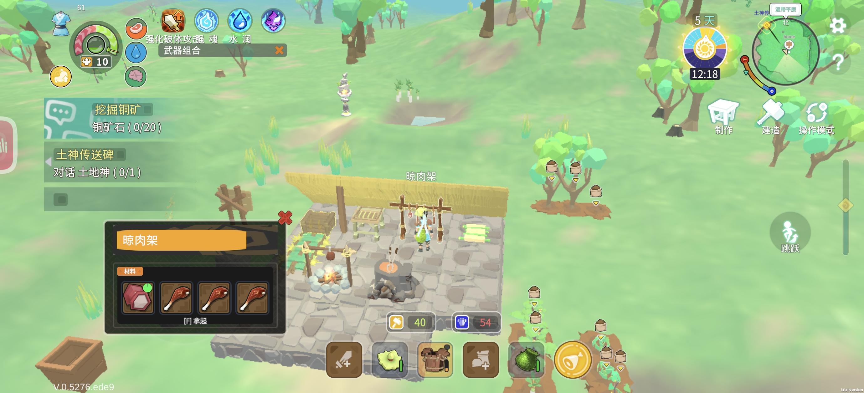 补充一个bug,烤肉架貌似没适配好,打开烤肉架页面后要按f拿取,直接点点不了,只能在外边按顺序拿取