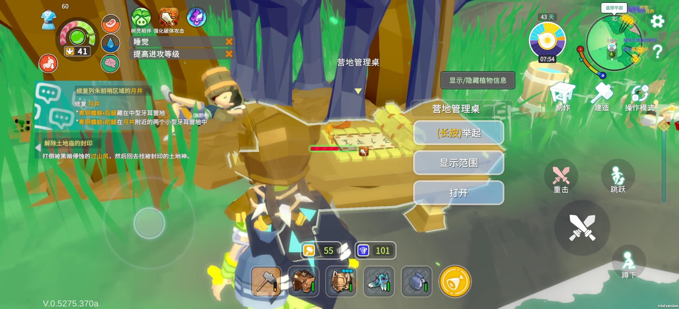 俩天也是玩了十几个小时了,提几点建议①烹饪锅的使用可以优化,食材选取方面不可以滑动②新手教程可以优化,我是初期不爱看攻略,不按步骤的那种,然后我玩到后面卡住了因为前面漏步骤了,有一些指导不在任务栏里面,藏在制作那边我找了半天③营地伙伴方面,我前期邀了个伙伴结果上战场和我一起死了,再也找不到了,是等到营地工作台做出来后召回的