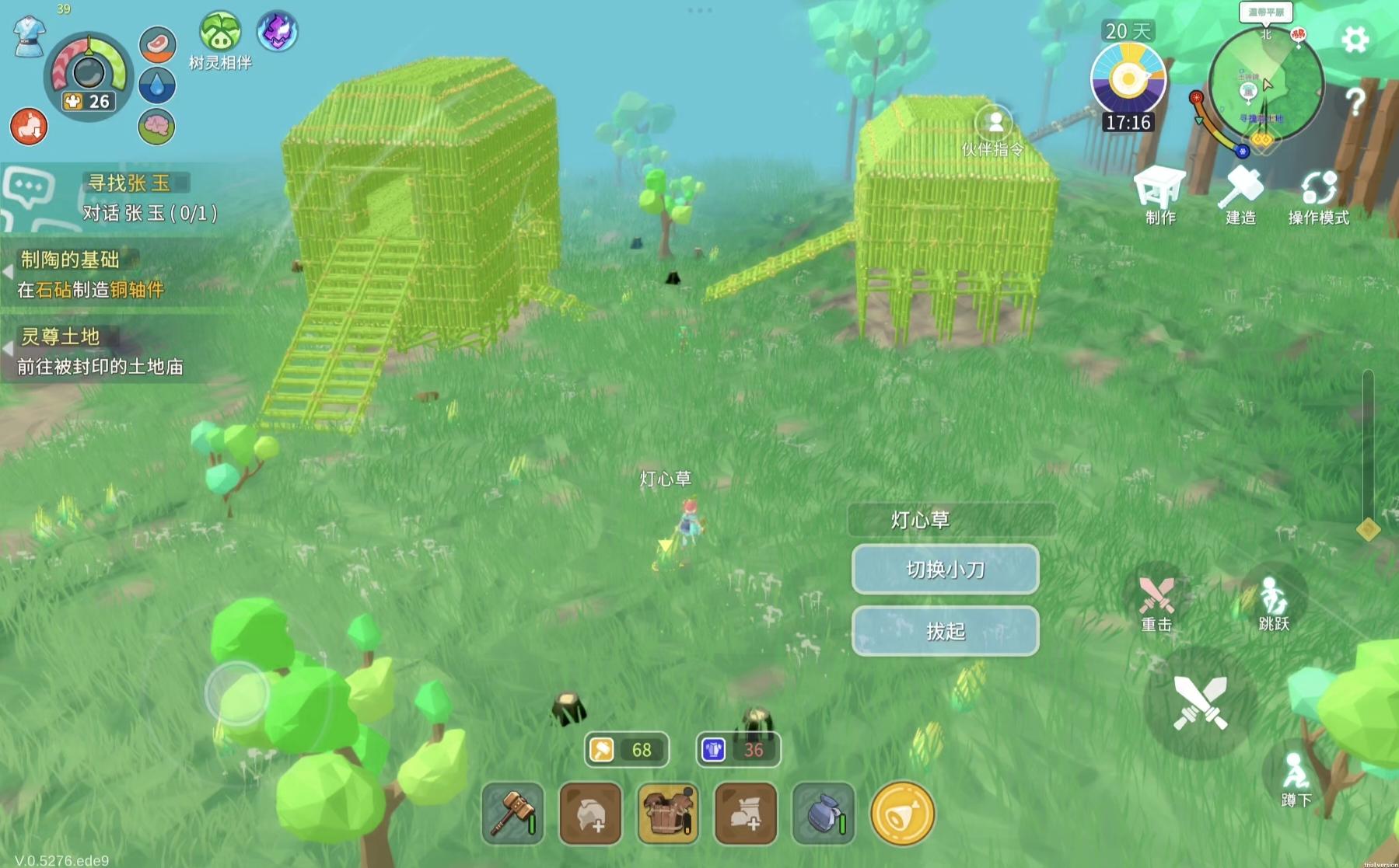 又玩了两天重新写一份攻略开局:按照指引走一直到打鸡霸,这个时候在那边找亚麻,先做好捕虫网,还有亚麻包,多存点亚麻,包括亚麻根也搞一些注意开头建房子的时候不用建多大,因为后面有营地之后你没必要带着营地走,自己随身的屋子可以用质量好一些的材质,不过开头先用好获得的材料凑合后面见完张玉优先去搞土地庙封印,解除完封印开完营地管理桌,直接在土地庙附近做营地关于伙伴,你如果把他拉入战斗状态的话是可以看