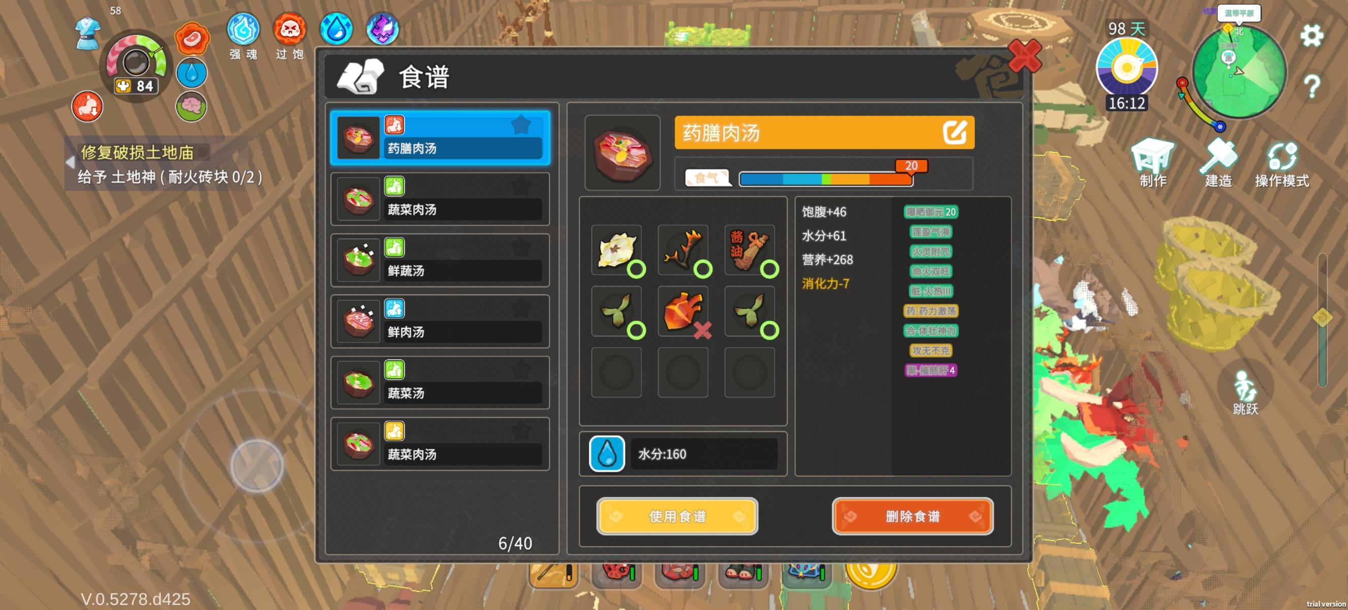 玩法:中国版3d饥荒,内容比饥荒多,玩法很真实,确实很好玩,价格合适,但是,可以等一波优化再入。手游端:1+ACE3Pro,开性能模式,高帧率高分辨率,30秒开始发热,持续游玩3分钟,帧率掉到29端游:手机持续游戏10分钟实在受不了,买了steam本体+捆绑包95元(本体65元),最高画质,散热风扇都懒得转,这里提一嘴,开发者13个月没更新端游,专门移植手游,端游