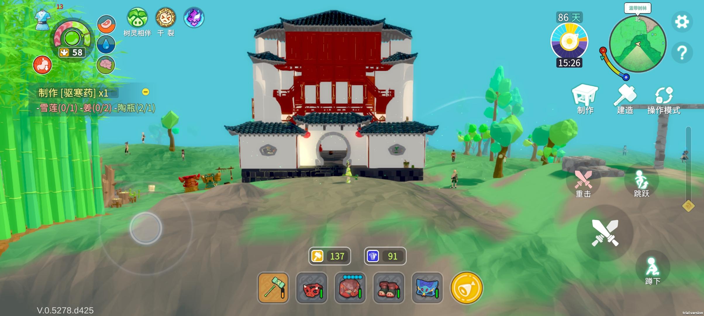 玩法:中国版3d饥荒,内容比饥荒多,玩法很真实,确实很好玩,价格合适,但是,可以等一波优化再入。手游端:1+ACE3Pro,开性能模式,高帧率高分辨率,30秒开始发热,持续游玩3分钟,帧率掉到29端游:手机持续游戏10分钟实在受不了,买了steam本体+捆绑包95元(本体65元),最高画质,散热风扇都懒得转,这里提一嘴,开发者13个月没更新端游,专门移植手游,端游