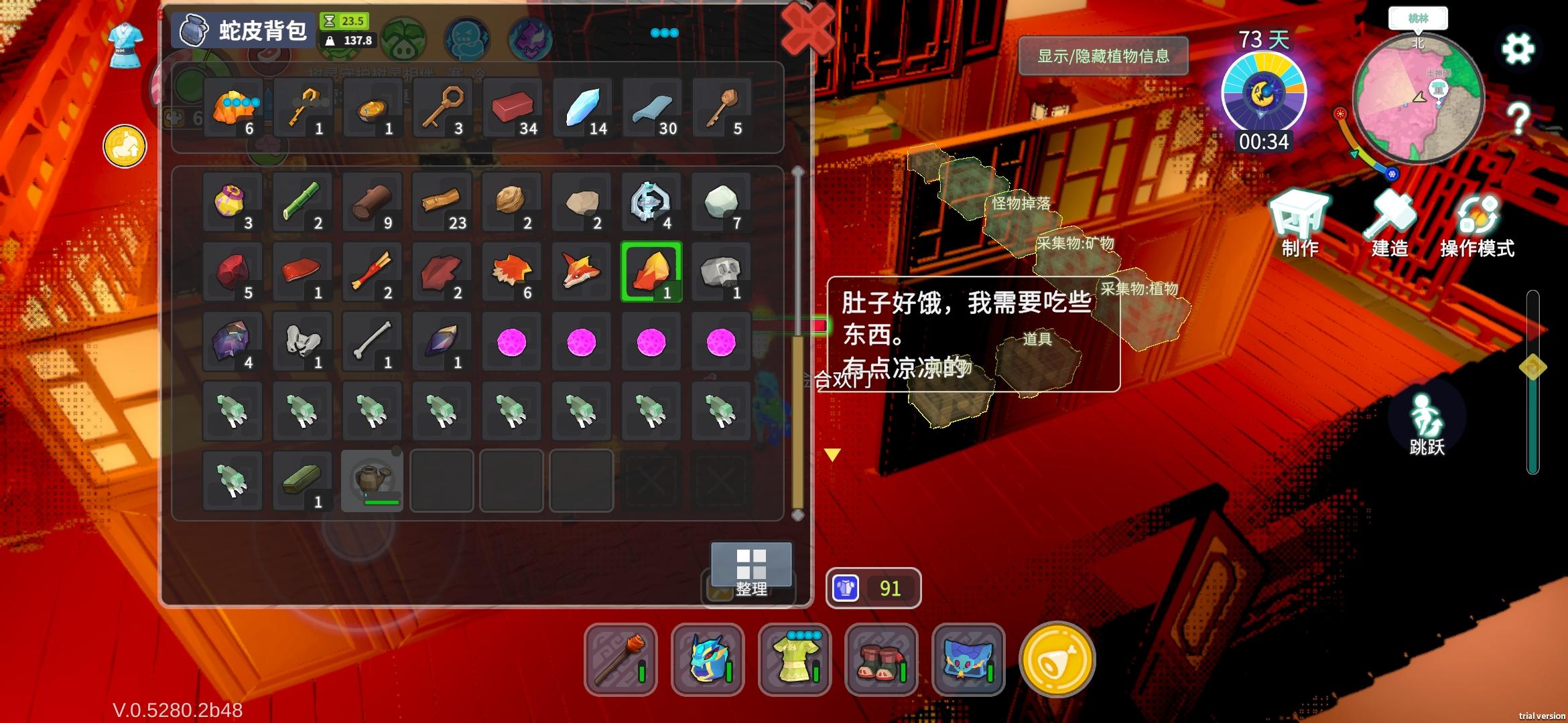 声明:该帖子里面BUG发现和建议仅是个人目前主观的观点,不代表官方最终优化。如果您发现了更多游戏BUG问题,欢迎评论!首先完成指引后路标都会消失,只有新手第一次“长按拾取所有物品”该路标不会消失。例如“坐在椅子上可以恢复血量”,切换建筑模式可以快速拆掉建筑”该路标都会消失。竹林任务的青蛙腿可以正常掉落,桃林的不能,卡在空中,搭上去也无法拾取。原本以为满血,却突然暴毙,但是不知道怎么卡出来的了