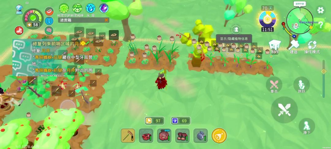 武器是匕首:炽杨刀柄+巨兽碎骨刀刃。 这组合匕首伤害高,且攻速快。 防具穿的是青铜套+全套牛牛配件。 鞋子是穿的狼鞋子。 熊大位置:雪山巨大树洞,具体刷新机制不知道,好像是对着树洞a几下?反正我就是这么干的。地图上是一个大圆圈,还是很明显的。因为有bug熊大是看不见的,只能看见一个小熊的图标。 打法:吃个肉汤,我吃的是加攻击的肉汤,吃饱饭喝好水,但不要过饱,带好回血药(打营地给很多的药)打之前保存
